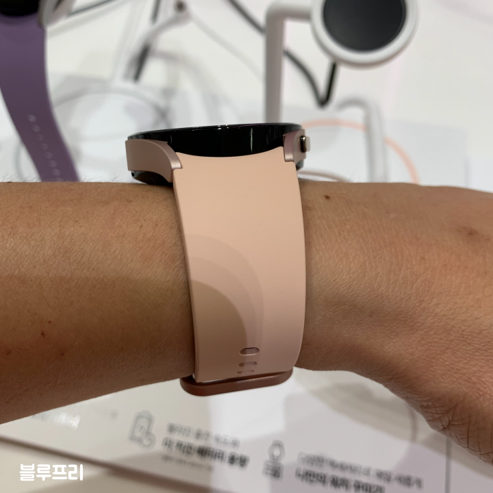 이번에 나온 갤럭시워치5 40mm 핑크골드 모습입니다. 알고보니 스트랩이 핑크이며 본체에서 골드 느낌이 많이 났습니다. 다른 색상들은 스트랩과 본체 색상이 똑같은데 이 제품은 느낌이 다르게 보였습니다. 그럼에도 여성 분들에게는 수요가 높을만한 제품 같았습니다. 실제로 지난해 하반기 출시된 갤럭시 Z플립3 스마트폰이 여성 분들에게 많은 인기를 끌었습니다. 최근 출시된 갤럭시 Z플립4 같은 경우에도 여성 분들에게 높은 관심을 끌 것으로 보이는데 해당 스마트폰과 함께 사용하기 좋을만한 스마트워치가 바로 갤럭시워치5이며 40mm에 핑크골드 색상이 있습니다.