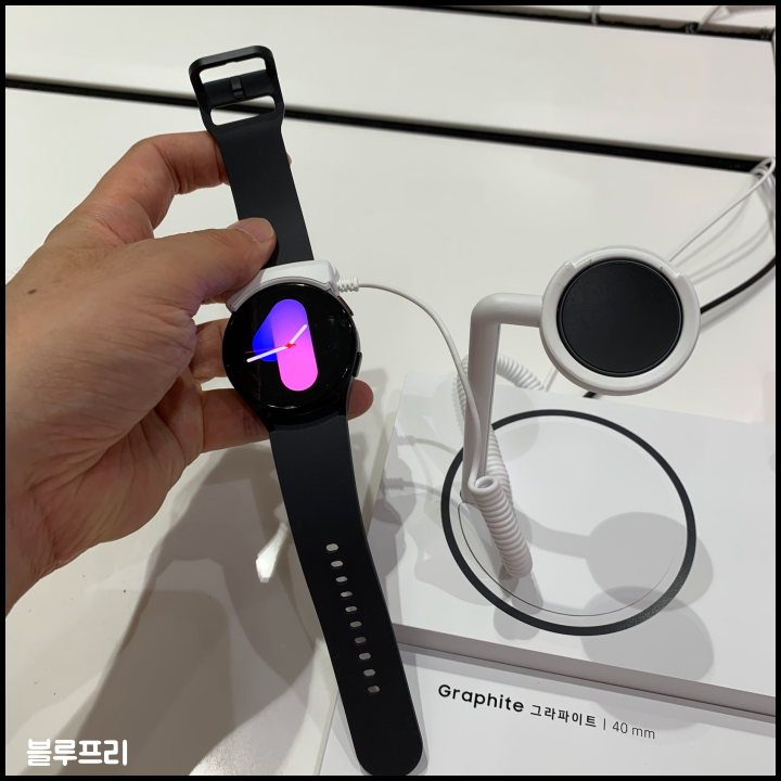 이번에는 갤럭시워치5 40mm 그라파이트 색상을 봤습니다. 실질적으로는 전형적인 블랙 계열의 제품이었습니다. 무난한 색상의 스마트워치를 이용하고 싶어하는 분들이 관심을 가질만한 제품이 될 것으로 보입니다. 어쩌면 어두운 색깔의 스마트폰을 선호하는 분들이 선택하기 쉬울 만한 제품일 수도 있겠다는 생각도 해봅니다. 현재 많은 사람들이 스마트워치 또는 손목 시계 이용하는 추세에서 합리적인 가격대로 이용하기 좋을 만한 제품은 갤럭시워치5 40mm 같습니다. 삼성전자 스마트폰 이용하는 분들이 주목할 만한 제품인 것 같습니다.