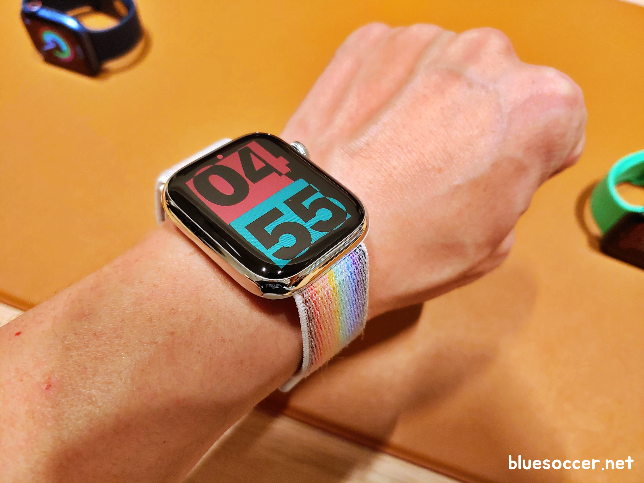 얼마 전에 애플스토어 잠실 매장이 새로 오픈했습니다. 애플의 여러 제품을 만나볼 수 있었는데 그 중에 하나가 애플워치7 스트랩 프라이드 에디션 스포츠 루프 입니다. 애플 공식 홈페이지를 보니 41/45mm가 있는데 제가 이곳에서 착용했던 제품은 45mm입니다. 그래서인지 제품 넓이가 크게 확보됐습니다. 알고 계시는 분들도 있겠지만, 애플워치7은 전작이었던 애플워치6과 달리 디스플레이 크기가 40/44mm에서 41/45mm로 달라졌습니다. 이 부분 참고하셔서 스트랩 알아보시면 될 듯합니다.