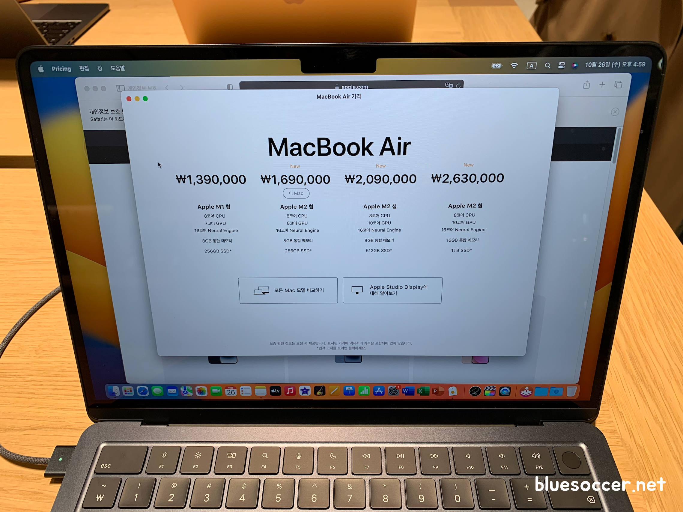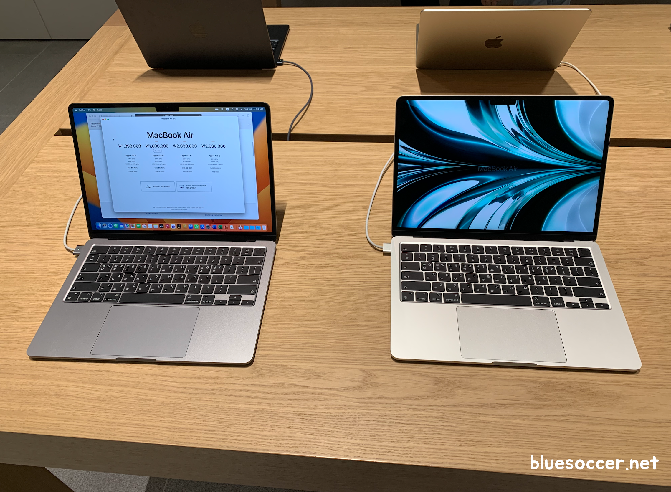 맥북에어 M2 가격 이렇게 안내됐습니다. 애플스토어 매장에 전시된 금액은 이렇습니다. RAM 용량이나 저장용량을 더 추가하면 금액은 더 올라갑니다.
