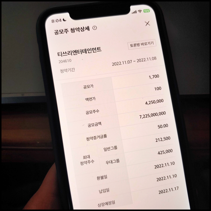 다만, 이번 11월 공모주들을 보면 11월 초순과 중순에 청약이 꽤 몰려있는 상황입니다. 미래에셋증권 계좌 있어야 신청 가능한 종목만 여럿 됩니다. 한도를 꽉 채워서 청약하는 분이 얼마나 될지 확신하기 어렵습니다. 여기에 계속된 금리 인상으로 정기 예금 및 적금, 파킹통장 향한 인기가 높아지는 추세를 놓고 보면 공모주 열기가 식을 가능성도 없지 않습니다. 그럼에도 기관들의 반응이 좋은 공모주 종목은 눈여겨 볼 필요가 있습니다. 티쓰리엔터테인먼트 종목 같은 경우에는 다른 변수도 있어서 신중하게 접근하셔서 청약 여부 결정하셔야 할 것 같습니다.