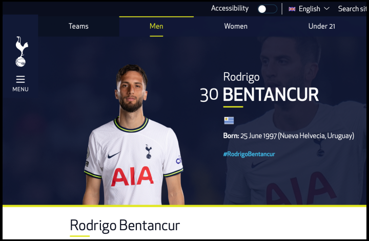 [사진 = 손흥민 소속팀 동료로 잘 알려진 로드리고 벤탄쿠르 우루과이 대표팀에 포함됐다. (C) 토트넘 공식 홈페이지 프로필 사진(tottenhamhotspur.com)]
