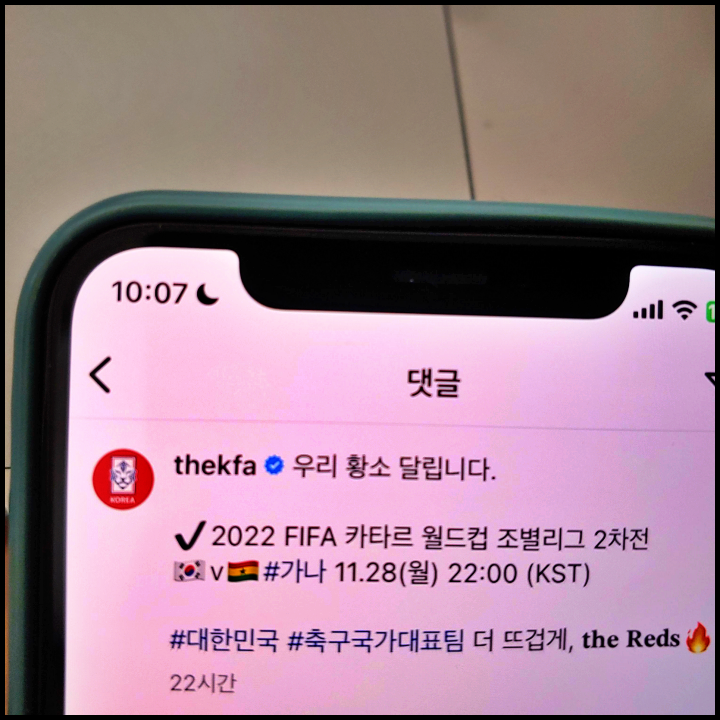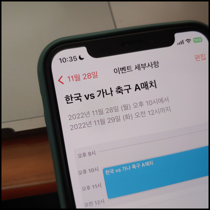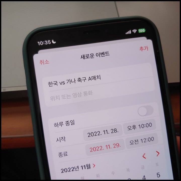 [사진 = 한국 가나 축구 맞대결이 펼쳐진다. 사진은 글쓴이 스마트폰 달력이며 2022년 11월 28일을 가리킨다. (C) 나이스블루]