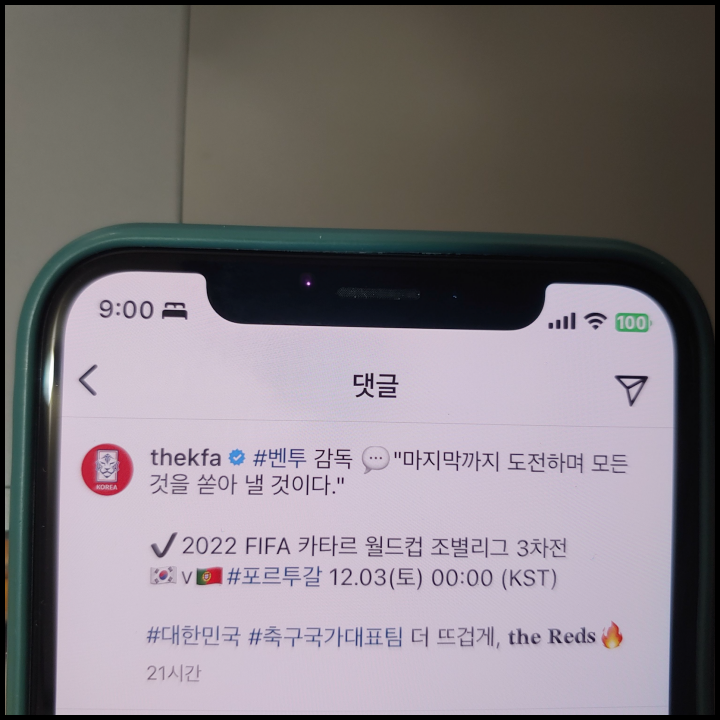 [사진 = 대한축구협회(KFA) 공식 인스타그램에서는 포르투갈전 알리는 게시물을 올렸다. 벤투 감독은 이번 경기에서 모든 것을 쏟아 낼 것이라고 밝혔다. (C) 대한축구협회 인스타그램]