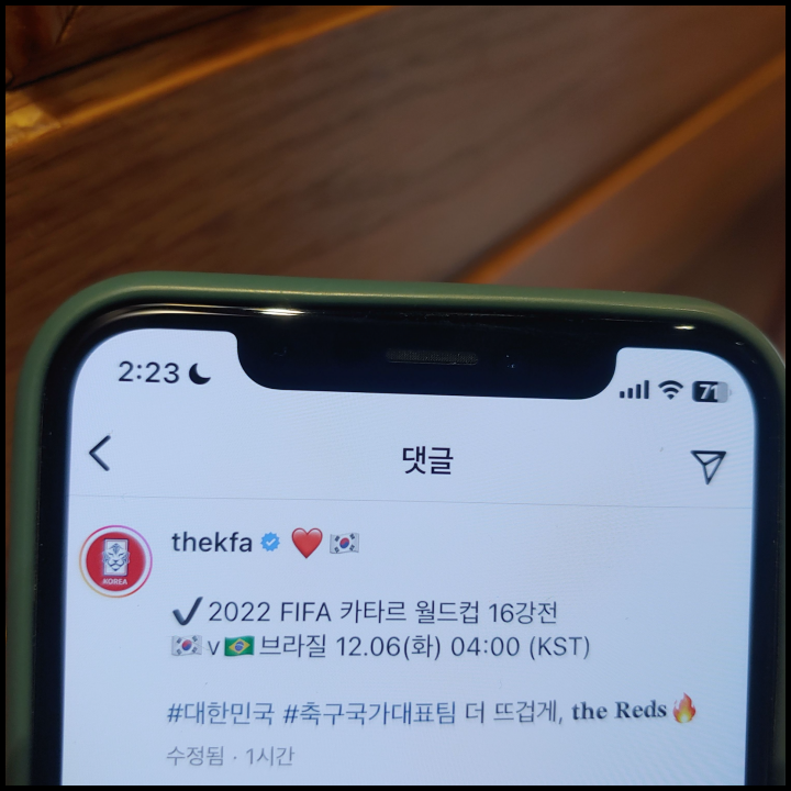 [사진 = 대한축구협회(KFA) 공식 인스타그램에서는 16강 브라질전을 예고하는 게시물을 올렸다. 지난 6월 평가전 이후 6개월 만에 맞대결이다. (C) 대한축구협회 공식 인스타그램]