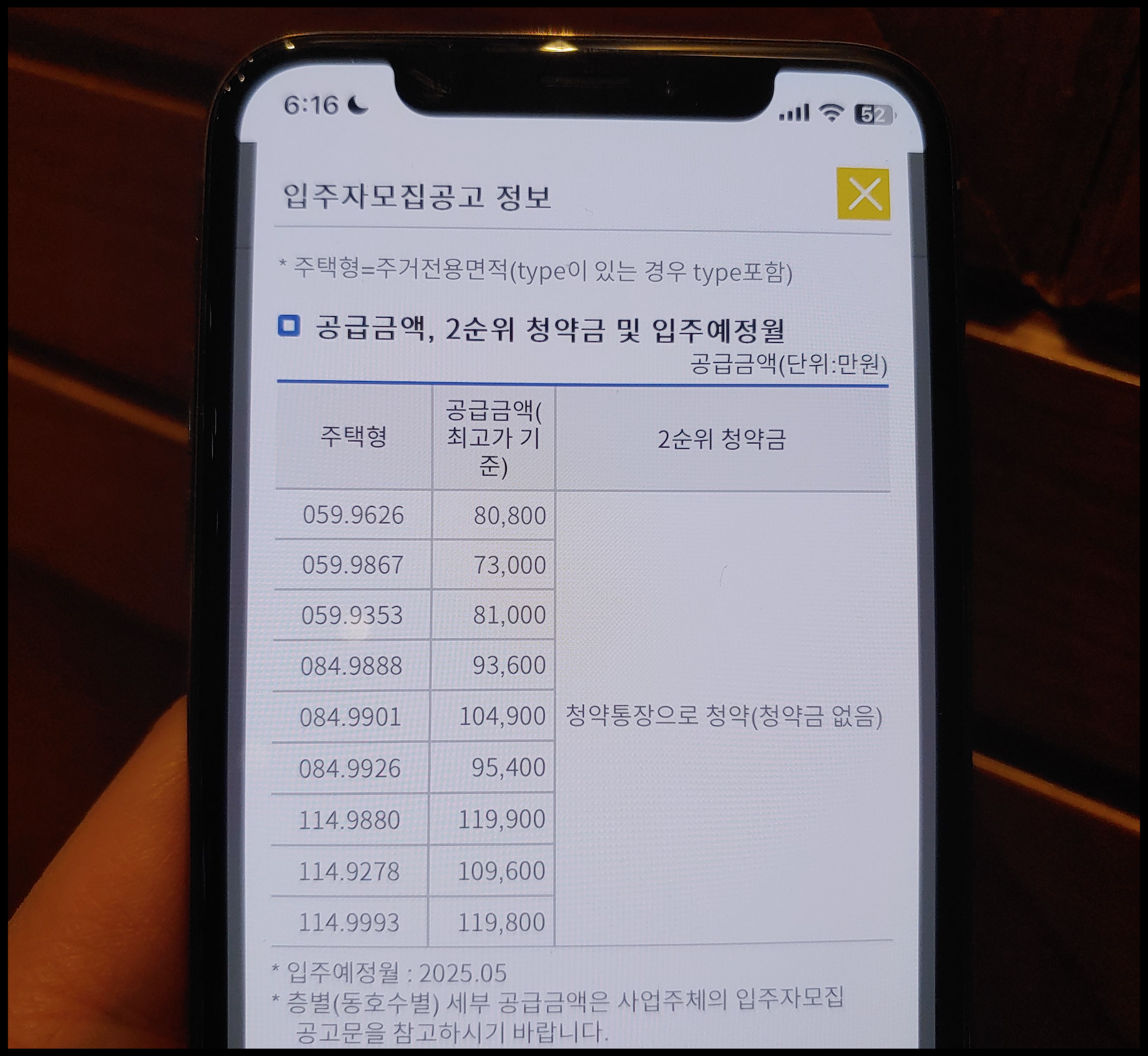 [사진 = 철산자이 더 헤리티지 분양가 이렇습니다. 2순위 같은 경우 청약통장으로 청약할 수 있으며 청약금 없다고 합니다. 입주예정월은 2025년 5월로 안내됐습니다. (C) 청약Home 앱]