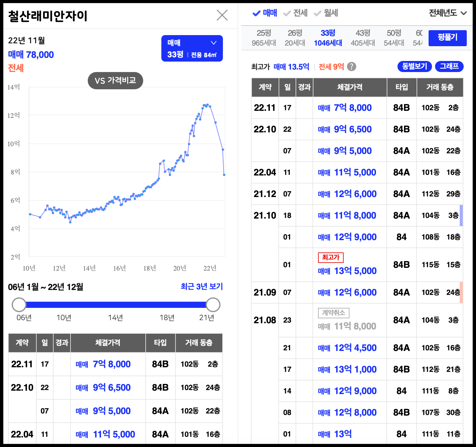 84B 타입 81세대 : 10억 4,900만 원