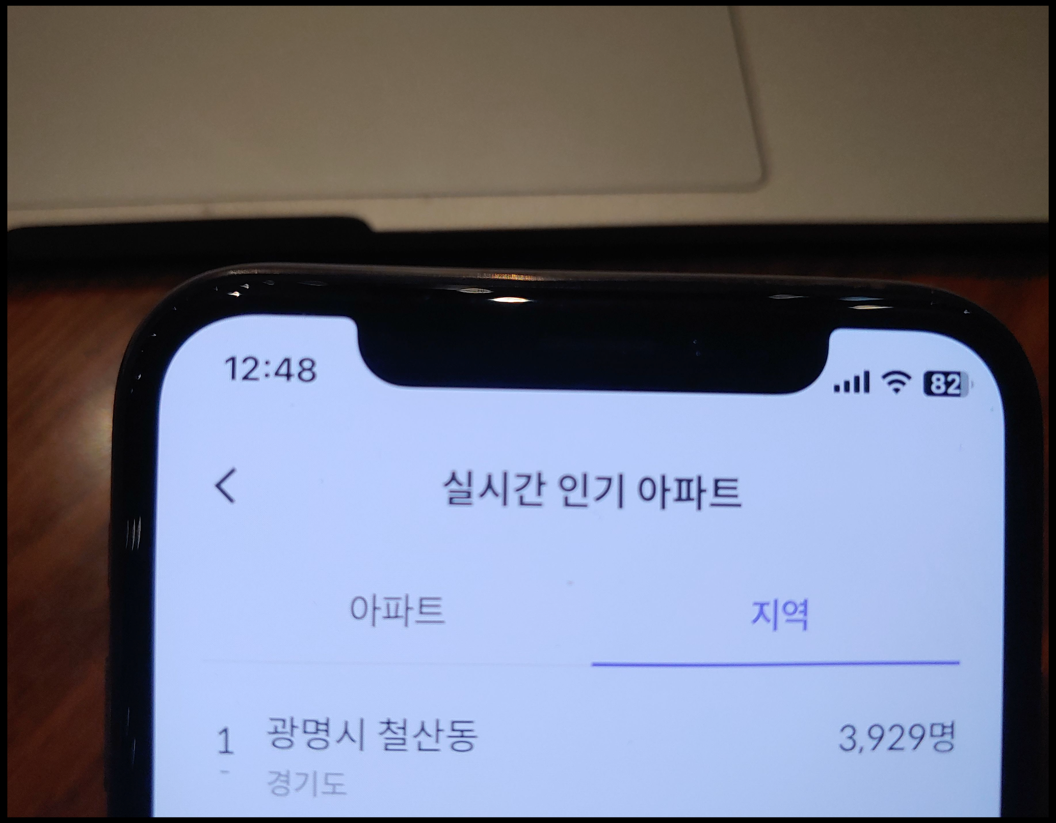 [사진 = 12월 26일 낮에 호갱노노 앱에서 철산자이 더 헤리티지 및 광명시 철산동이 검색어 1위에 올랐습니다. 많은 사람들의 관심이 집중된 아파트 단지이자 지역임을 알 수 있습니다. (C) 호갱노노 앱]