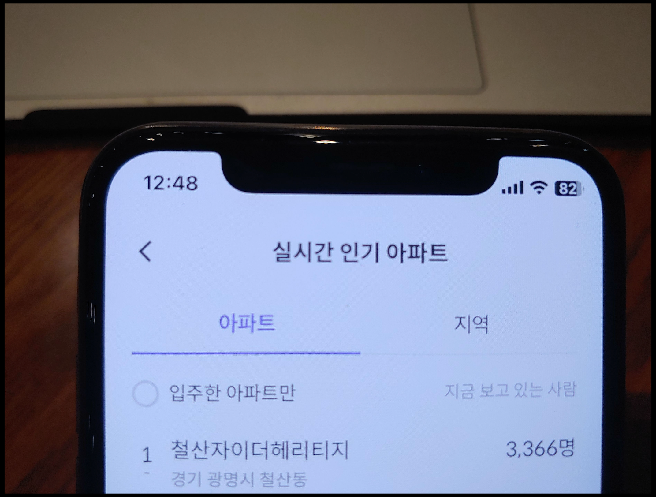 [사진 = 12월 26일 낮에 호갱노노 앱에서 철산자이 더 헤리티지 및 광명시 철산동이 검색어 1위에 올랐습니다. 많은 사람들의 관심이 집중된 아파트 단지이자 지역임을 알 수 있습니다. (C) 호갱노노 앱]