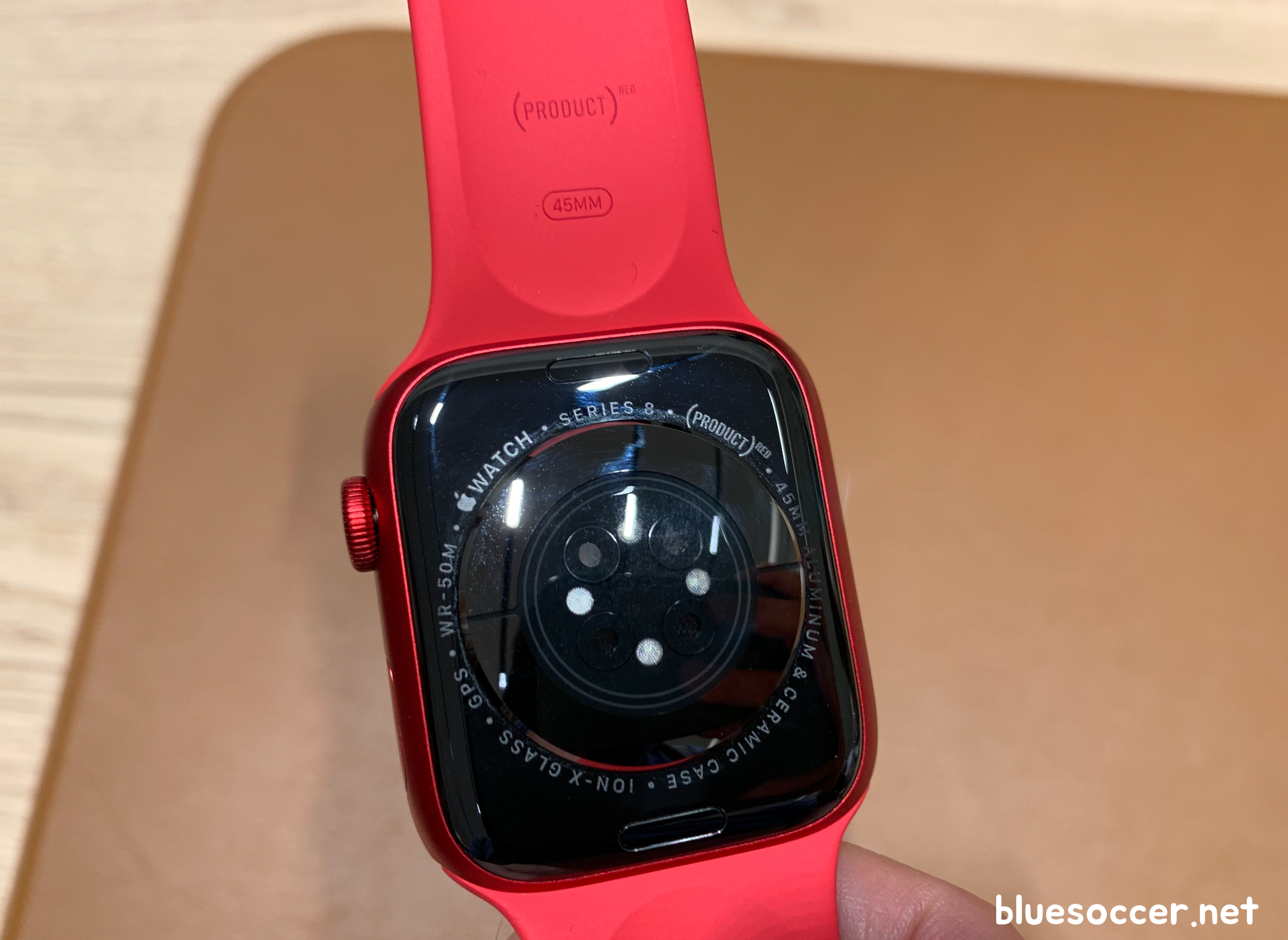 실제로 제가 오프라인에서 봤던 제품은 애플워치8 45mm 프로덕트 알루미늄 케이스로 표기되었음을 알 수 있습니다. 언뜻보면 41mm 모델과 크기가 비슷하게 보여서 서로 혼동되기 쉬운데 본체 뒤쪽을 봐야 41mm인지 아니면 45mm인지 정확히 볼 수 있습니다.