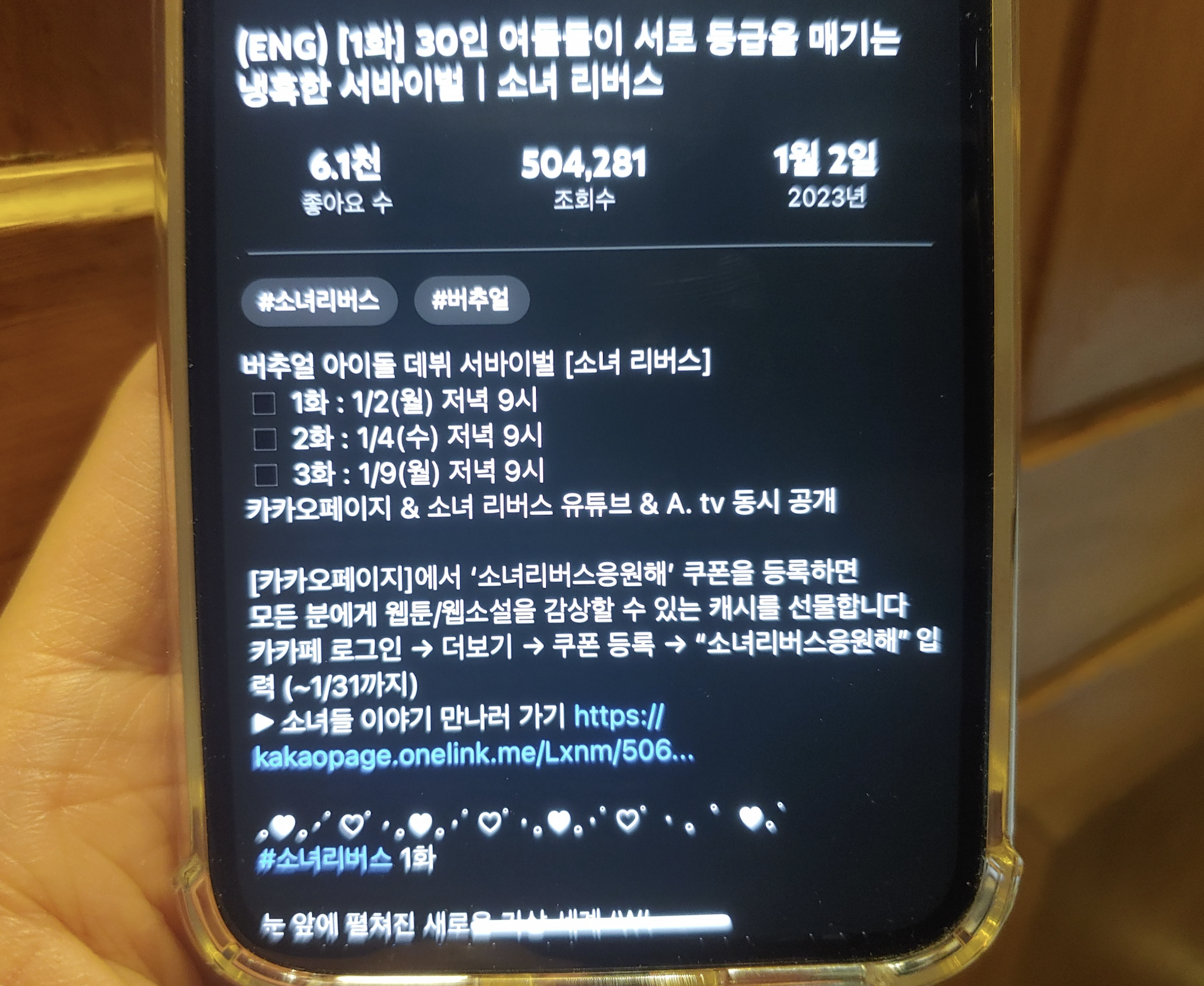 [사진 = 소녀리버스 유튜브에서 시청 가능합니다. 해당 채널에서 현재 시점 기준으로 1화 조회수 50만 뷰, 2화 조회수 43만 뷰 돌파했습니다. 오는 1월 9일 오후 9시 3화 공개 예정이라고 합니다. 1~2화 현재까지의 반응이 긍정적입니다. (C) 소녀리버스 공식 유튜브]