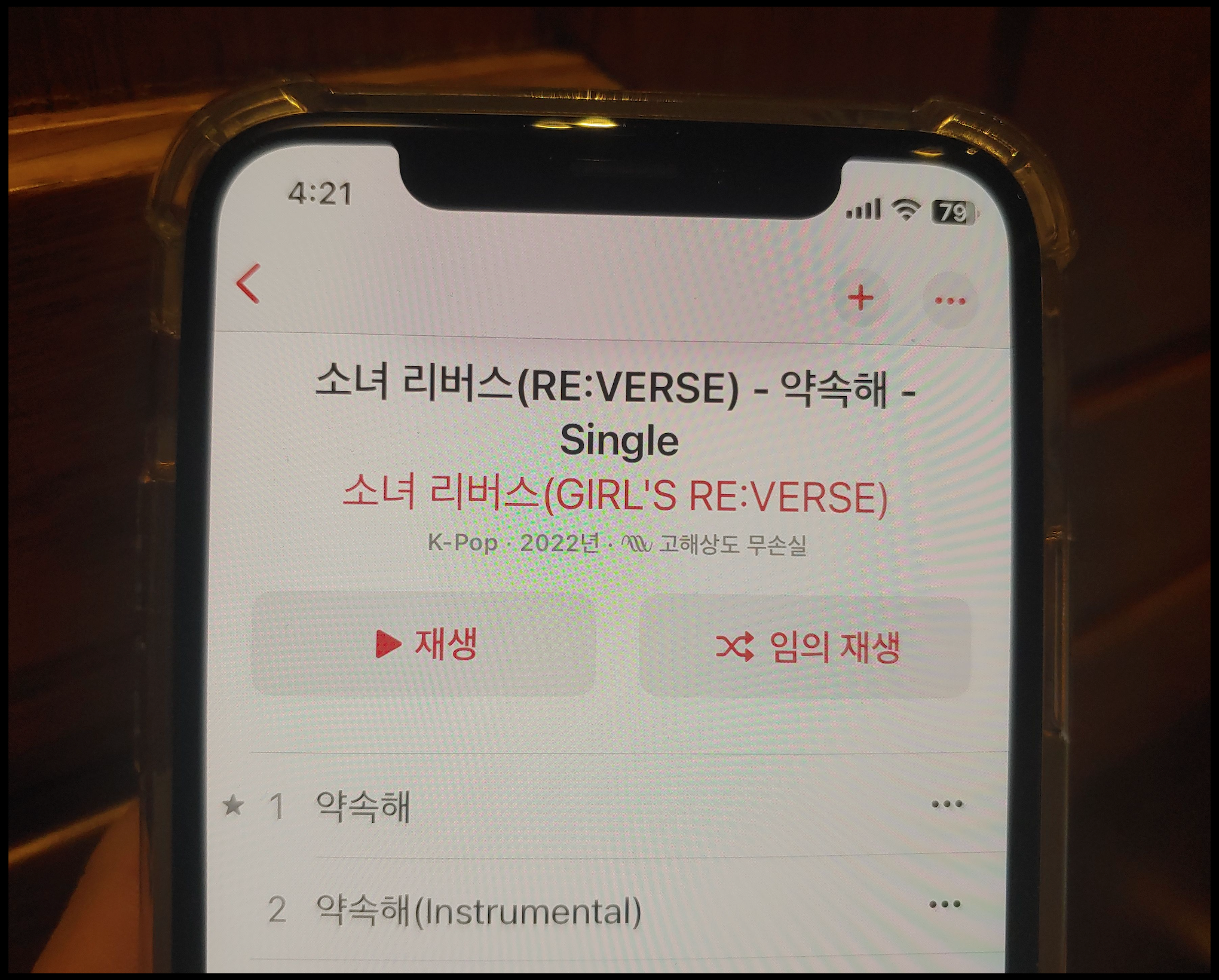 [사진 = 소녀리버스 메인 테마곡 약속해 노래는 애플뮤직 포함한 각종 음원 앱을 통해서 들을 수 있습니다. (C) 애플뮤직 앱]