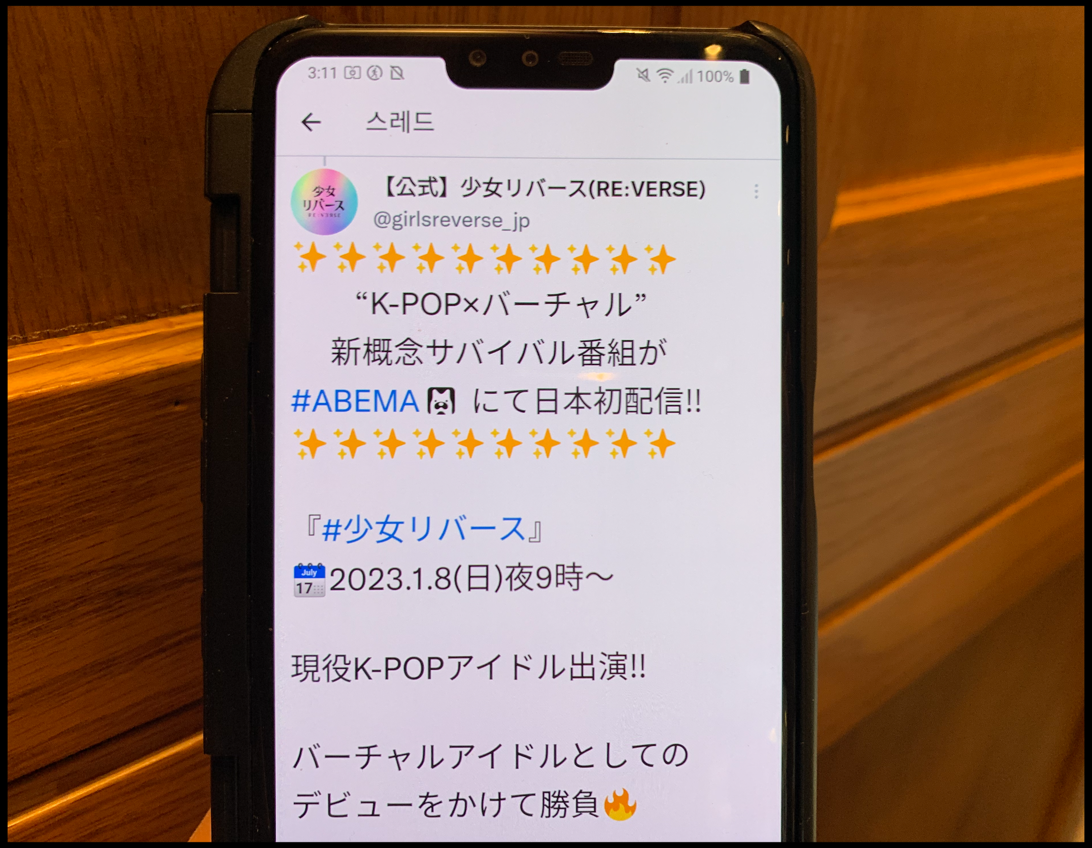 [사진 = 소녀리버스 일본 공식 트위터 채널 팔로워가 최근에 1,200명 넘었습니다. 현역 K-POP 아이돌 30명이 가상 아이돌을 목표로 하는 서바이벌 프로그램이라고 전했으며 ABEMA에서 오는 1월 8일부터 일본 최초 및 독점 전송된다고 합니다. 현재 시점에서는 일본의 K-POP 걸그룹 팬들에게 입소문이 나기 시작했는데 ABEMA에서 본격적으로 방영되면 반응이 더 커질지 기대됩니다. 참고로 ABEMA는 일본의 인터넷 TV 서비스입니다. (C) 소녀리버스 일본 공식 트위터 채널]
