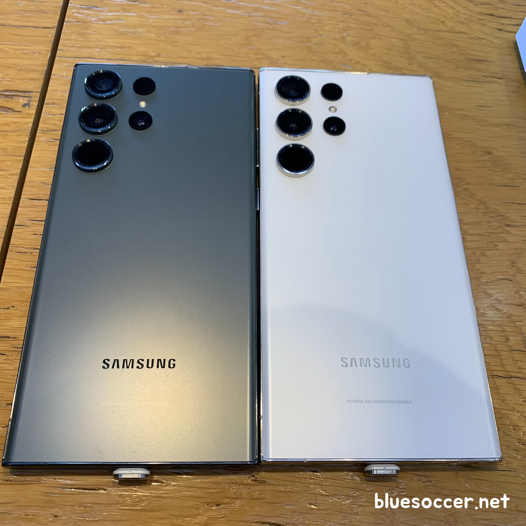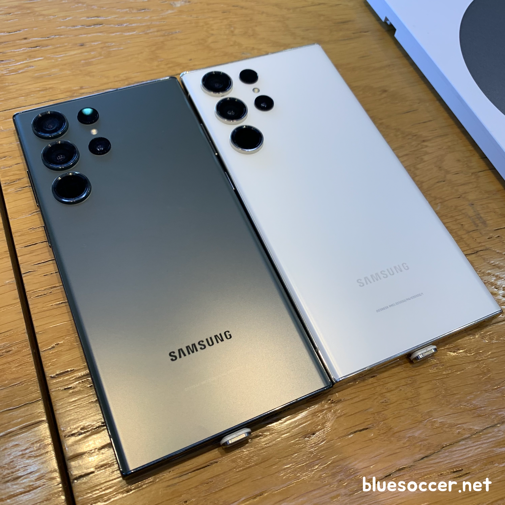 갤럭시S23 울트라 그린 및 크림 색상 함께 살펴보면 이렇습니다.(사진에서 각각 왼쪽과 오른쪽) 어둡거나 또는 밝은 톤의 차이점이 제대로 드러나는 것 같습니다. 그린 같은 경우 실물을 직접 보면 꽤 어둡습니다. 그런데 그린은 팬텀 블랙과 다른 색상입니다.