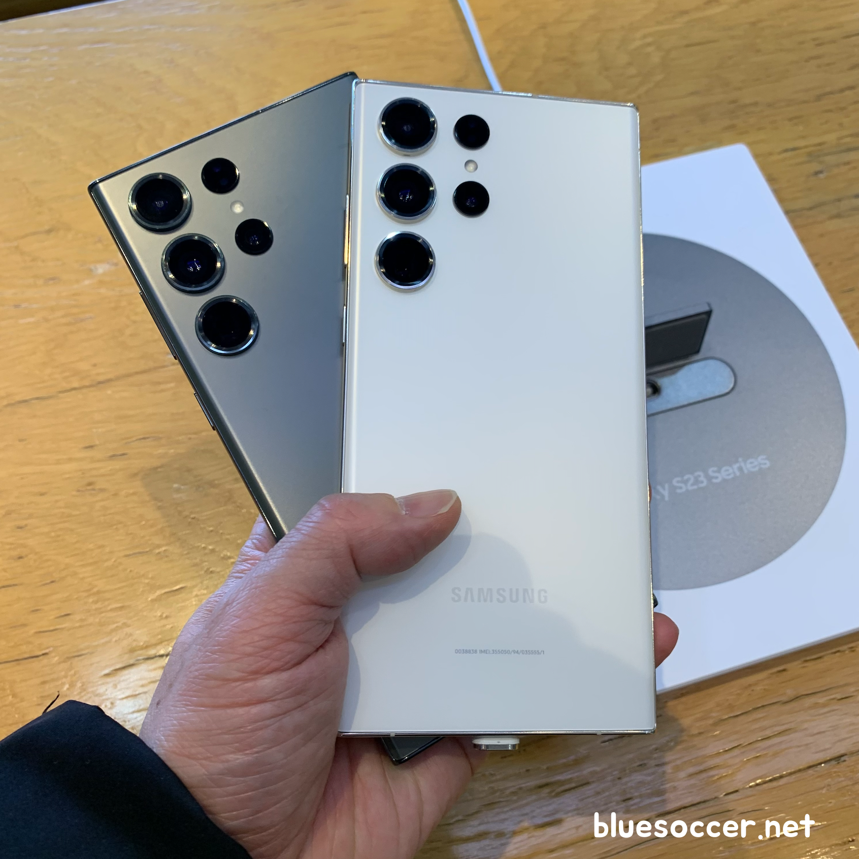 갤럭시S23 울트라 크림 후면 이렇습니다. 기본 색상 4가지 중에서는 가장 깔끔한 느낌의 제품입니다. 이러한 느낌을 선호하는 분들이 눈여겨 보기 쉬운 제품입니다. 크림 포함한 4가지 모두 인터넷에서 봤던 사진보다는 실물을 직접 봐야 '색이 잘 나왔다'는 것을 실감하실 겁니다. 해당 단말기의 경우 대화면 스마트폰이기 때문에 광활하다는 느낌도 받게 됩니다. 만약 커다란 크기가 부담되신다면 갤럭시S23 일반형 또는 플러스 제품으로 눈길을 돌리셔도 될 듯합니다. 일반 및 플러스에도 크림 색상이 도입됐습니다.