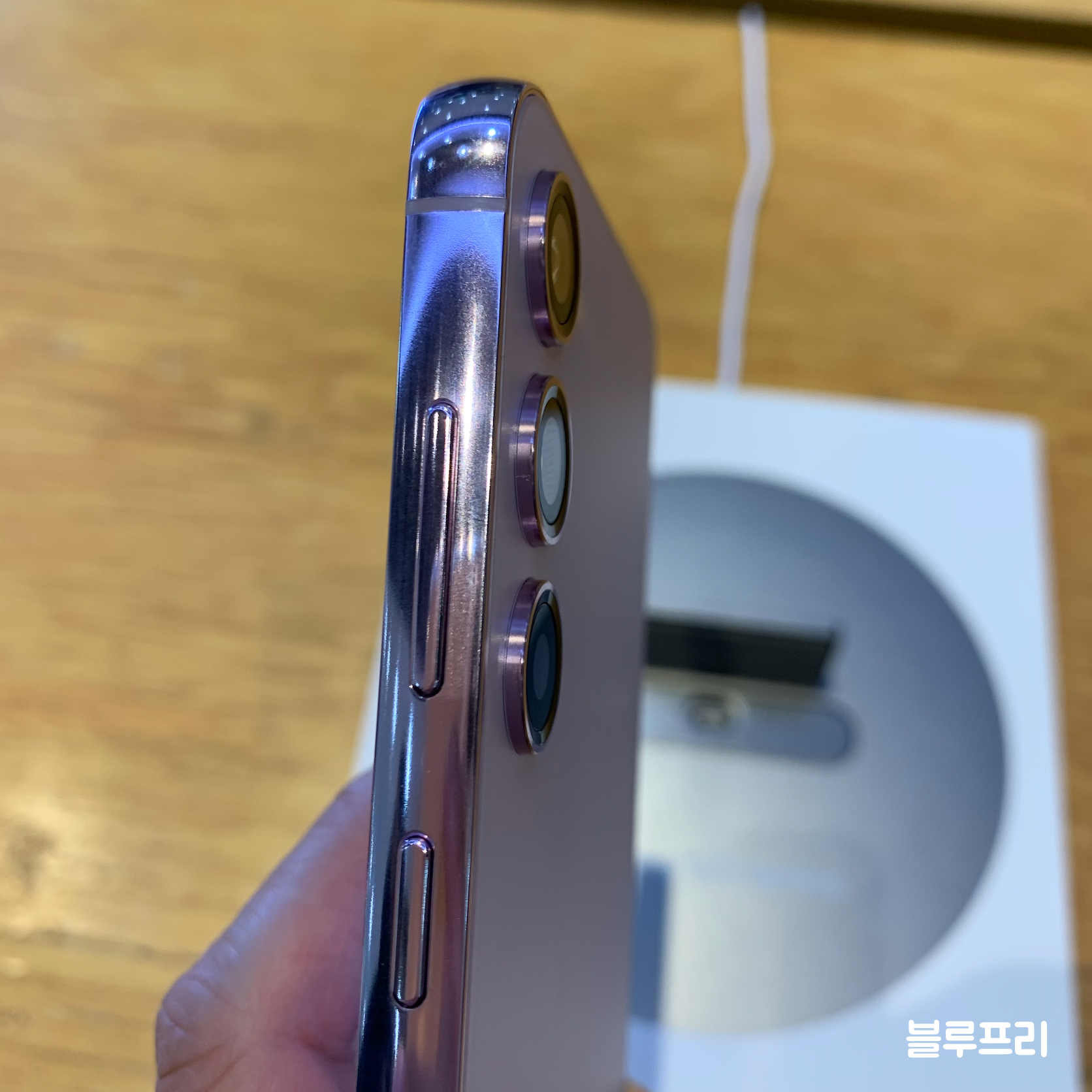 실제로 옆면을 보면 플랫형이 맞습니다. 울트라가 엣지 형태인 것과 다릅니다. 개인적으로는 옆면 좌우가 둥근 모양인 것을 선호하는데 그 이유가 그립감이 좋기 때문입니다. 플랫형이 그립감 좋은가에 대해서는 사람마다 생각이 다를 수 있으나 오히려 이 제품의 옆면을 전체적으로 둘러보면 잘 깎여 만들었다는 생각이 듭니다.
