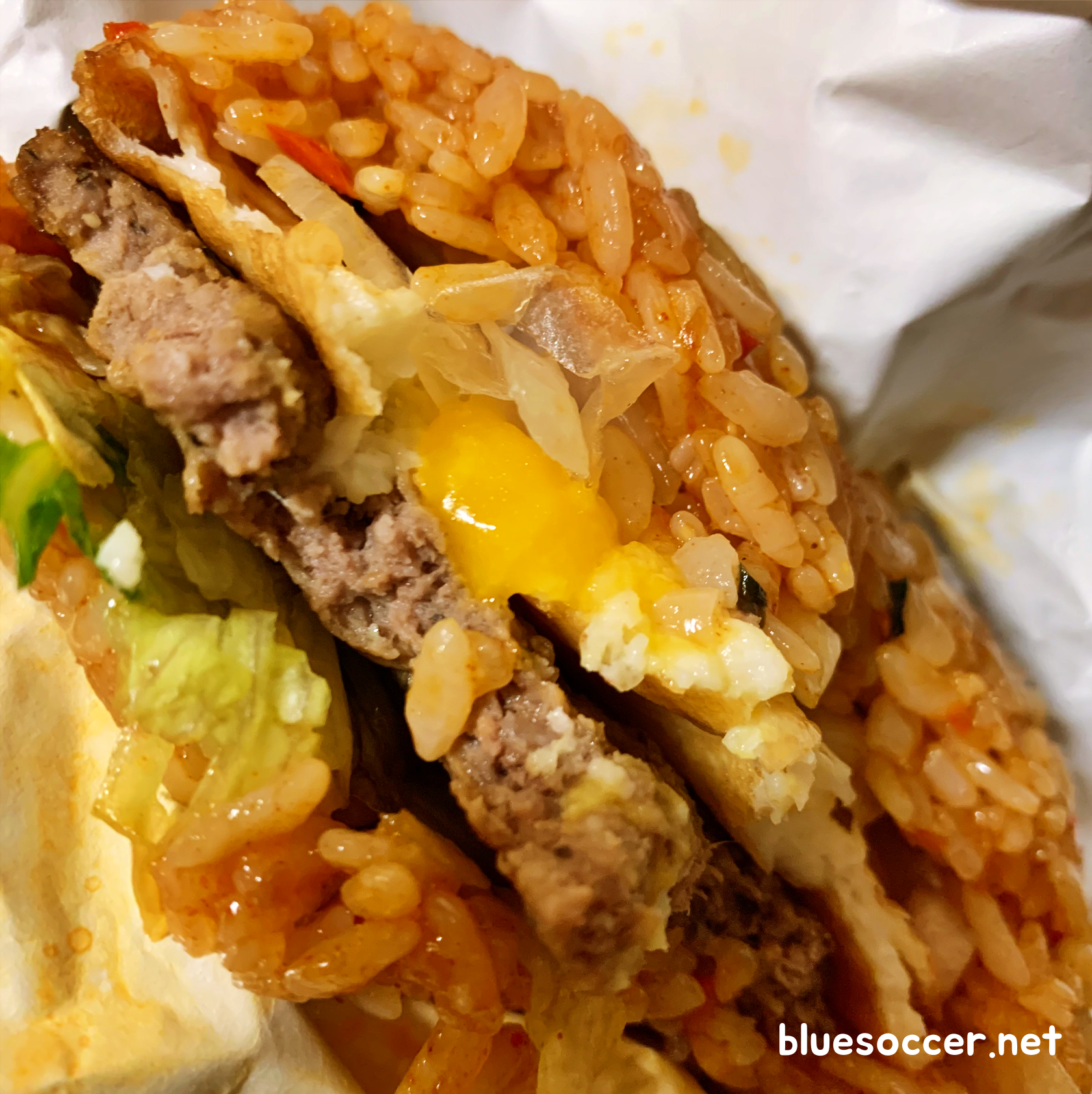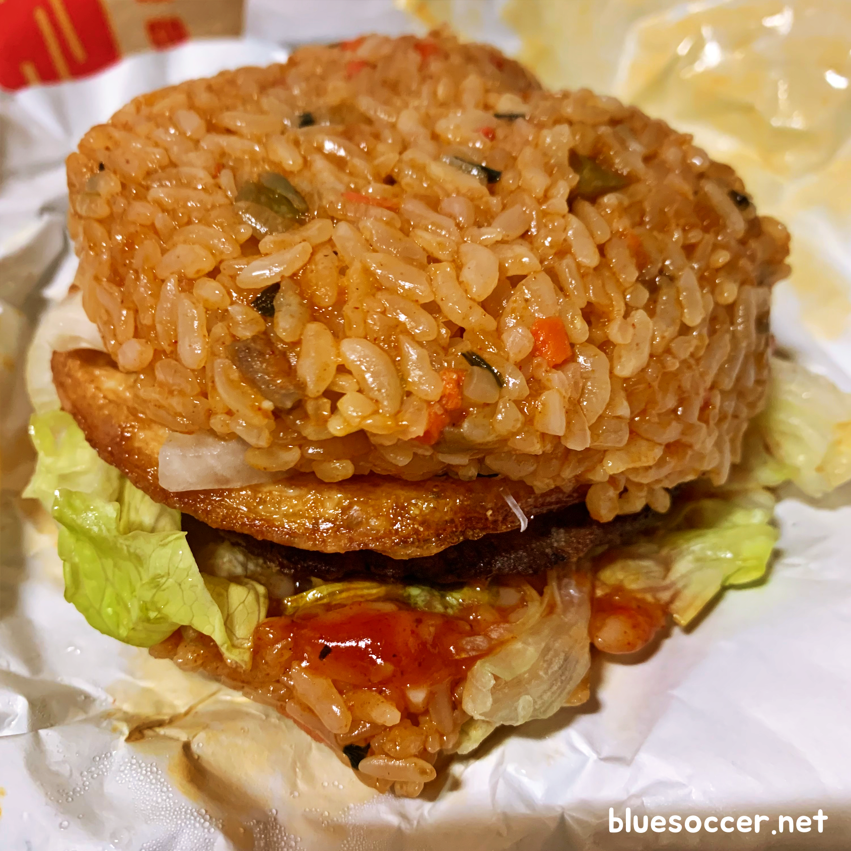 실제로 먹어보면 탄산음료와 함께 먹는 것이 좋을 듯합니다. 그래야 소화가 어느 정도 잘 되는 것 같습니다. 음식을 계속 먹으면서 느꼈지만 기름기가 많은 편입니다. 일반 햄버거 먹을 때와는 차원이 다릅니다. 그렇기 때문에 이 음식을 먹으면서 그 부분 신경써야 할 듯합니다.