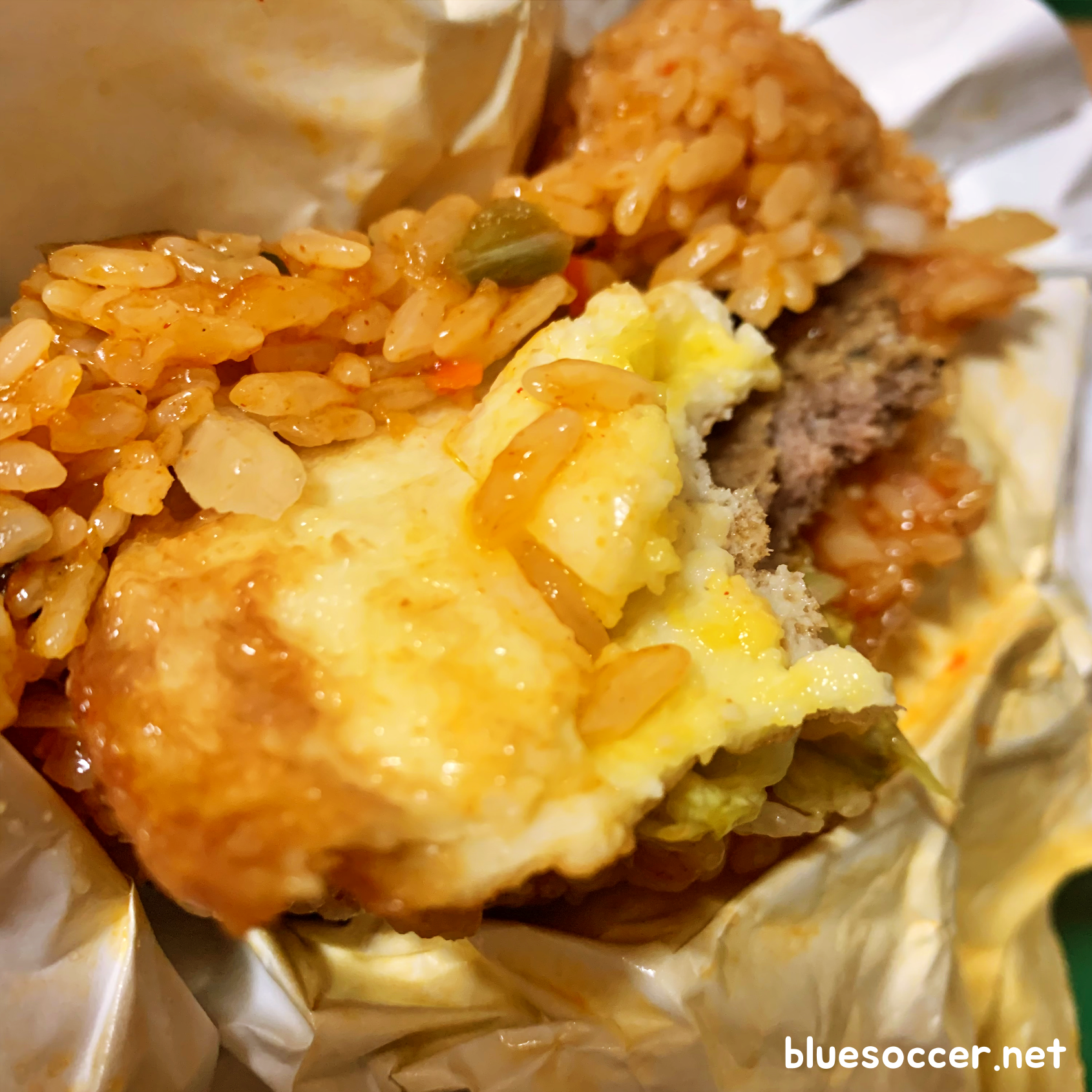 계란 부위는 생각보다 맛있었습니다. 이 음식의 맛을 살리는 대표적인 존재가 아닐까 싶습니다. 일반 비빔밥에서도 계란의 역할이 중요한 편인데 이 음식도 마찬가지였습니다. 다만, 고기 패티는 너무 기대를 안하셔도 될 듯합니다. 일반 햄버거는 고기 패티가 메인격이나 다름 없는데 이 음식은 고기 패티보다 밥이 더 메인이었음을 직접 먹으면서 실감했습니다. 결국 이 음식은 비빔밥 좋아하는 분들이 도전할 만한 존재였던 것 같습니다. 개인적으로는 맛있게 먹었습니다.