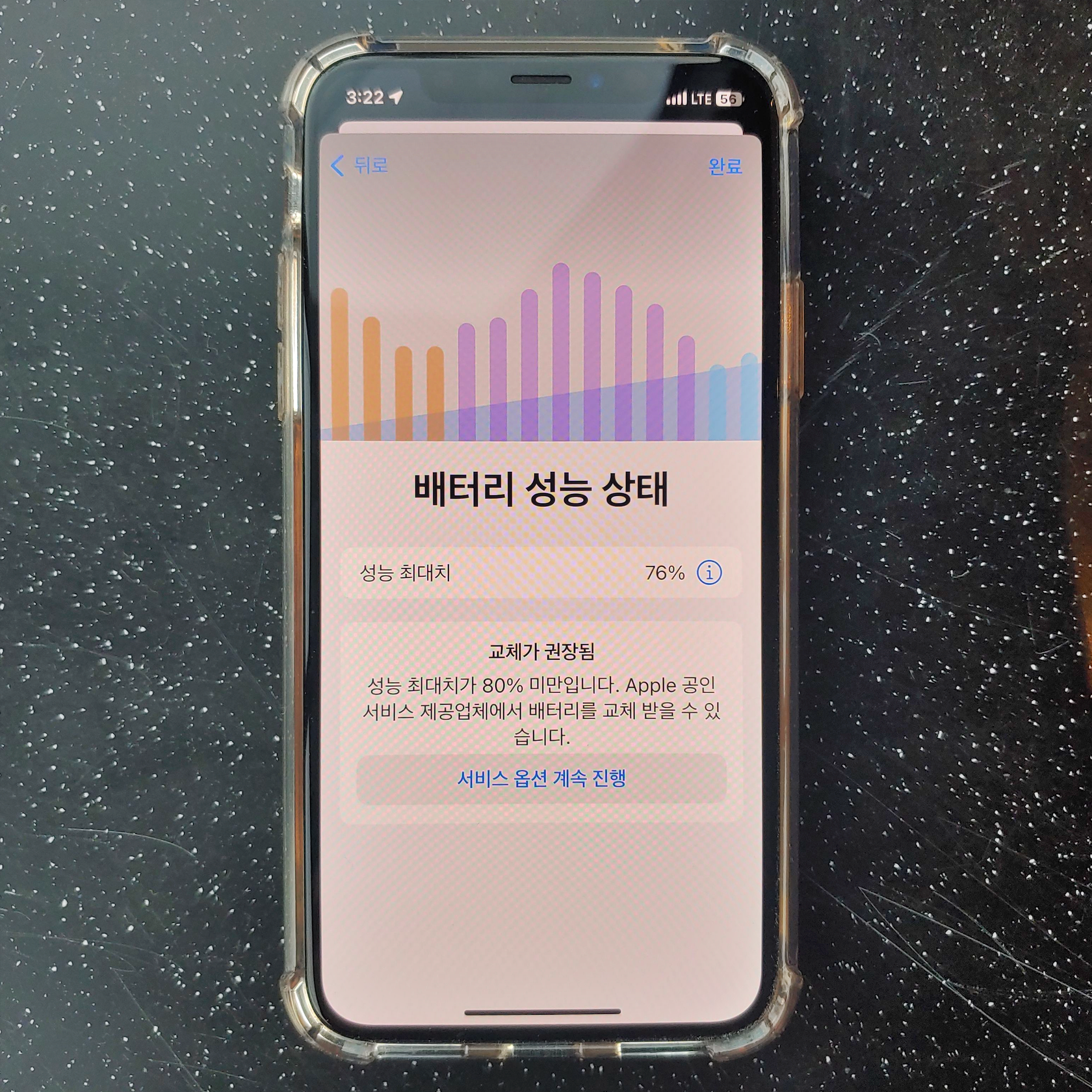 저는 아이폰xs 4년 5개월 동안 이용했습니다. 예전에는 스마트폰 주기가 짧았는데 아이폰xs 장만했던 이후부터는 길어졌습니다. 더 이상 스마트폰을 빨리 교체할 이유가 없어졌기 때문입니다. 그만큼 아이폰xs에 대한 만족감을 많이 느낍니다. 그런데 제품을 계속 이용하면서 불편한 점 하나가 뚜렷하게 나타났습니다. 배터리 효율이 점점 나빠졌습니다. 배터리 성능 최대치 76%까지 떨어졌을 정도였습니다. 일반적으로 80% 미만이면 애플 공인 서비스 제공업체에서 배터리 교체 받아야 합니다. 여기에 애플이 최근에 아이폰 배터리 교체 비용 인상 정책을 발표하면서 앞으로 며칠 후인 3월 1일 이후에 30,600원 더 지불해야 하는 상황이 올 예정입니다. 저는 계속 고민을 했는데 교체하기로 결정했습니다.