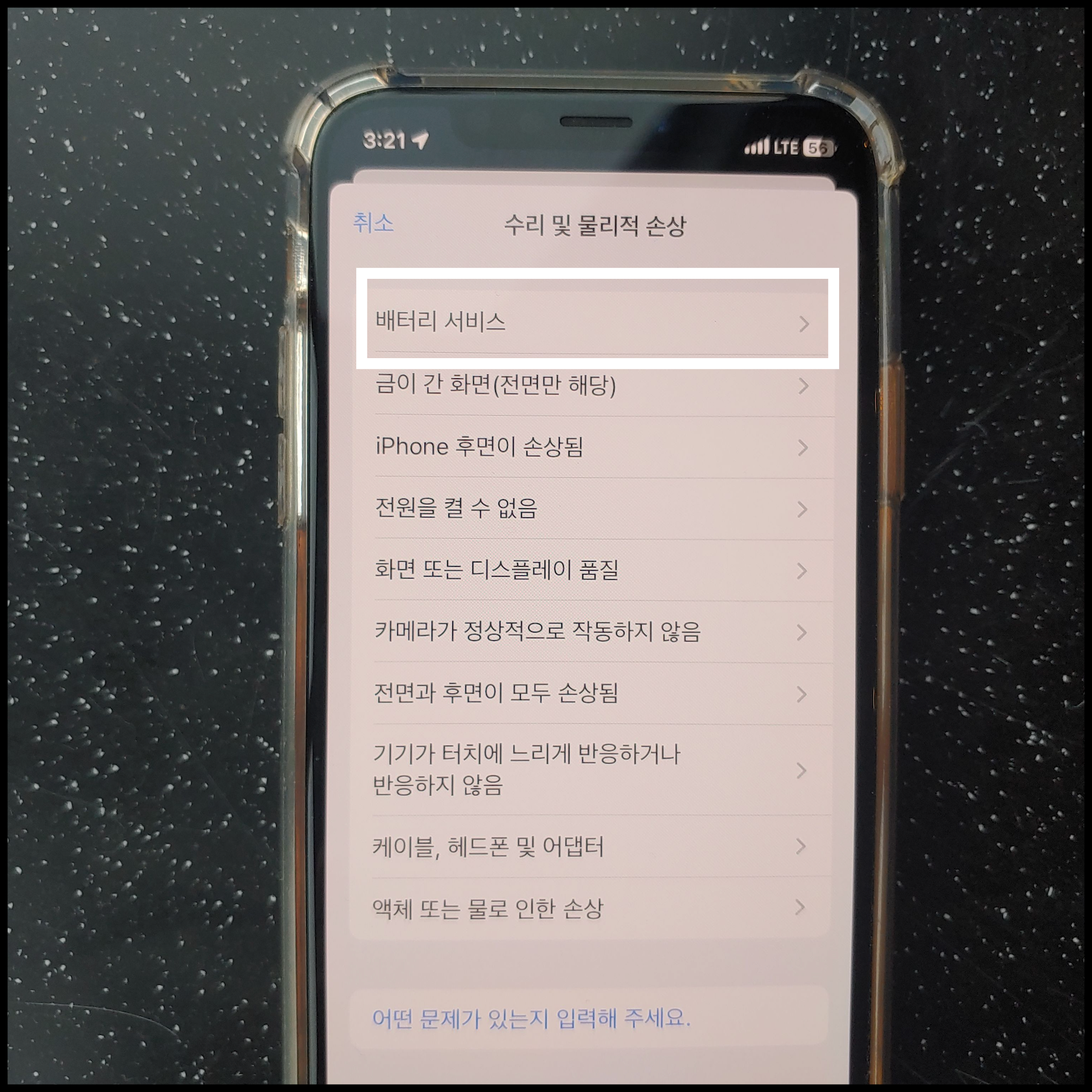 만약 아이폰 배터리 교체 희망하시면 지원 주제 항목에 있는 수리 및 물리적 손상 > 배터리 서비스 순서로 들어가시면 됩니다.