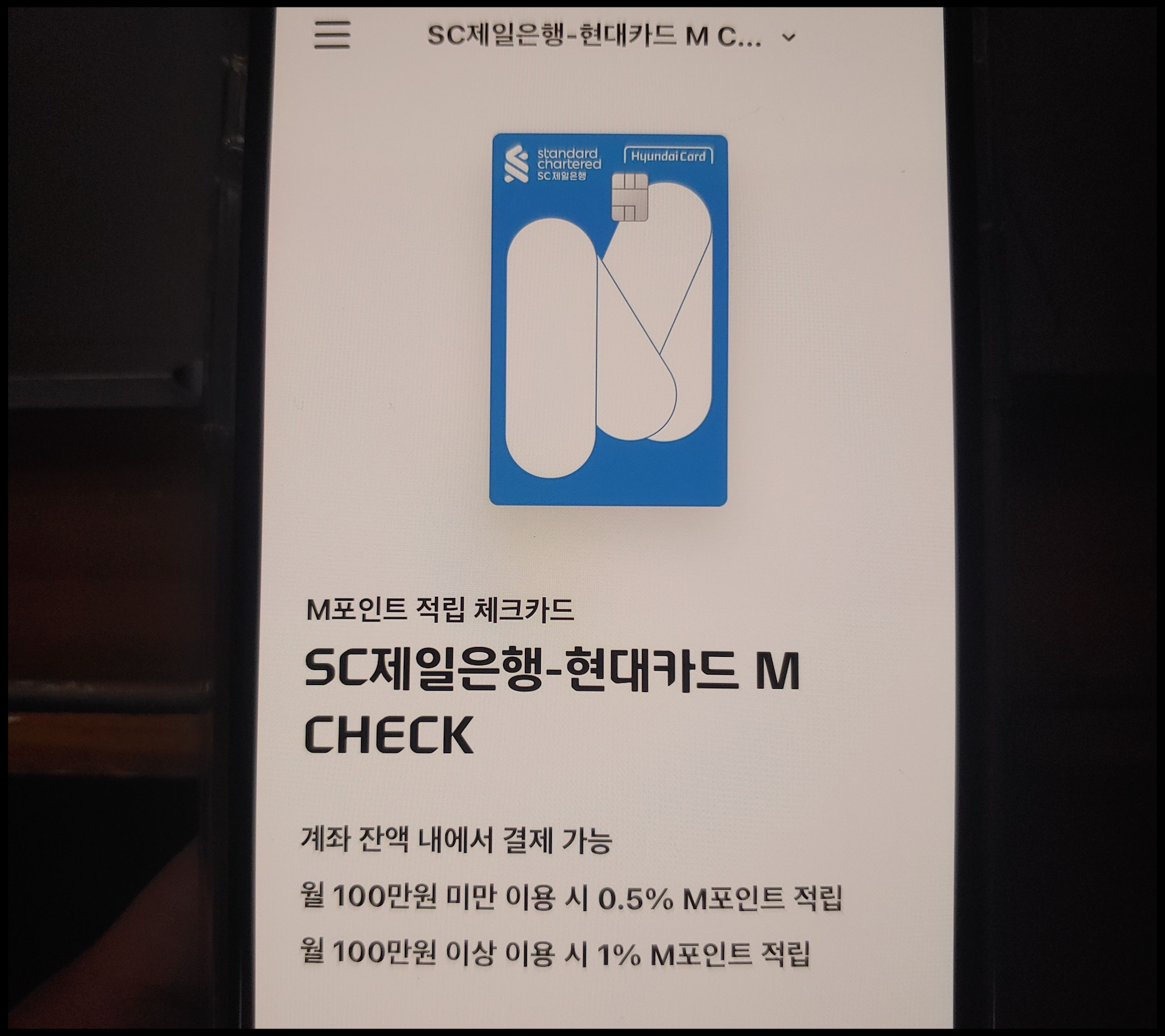 -일단은 현대카드 있어야 합니다.(한동안?) 체크카드 발급 시 SC제일은행 계좌 필요