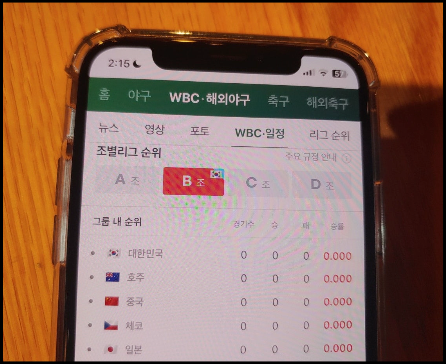 [사진 = 2023 WBC 본선 1라운드 B조 일정입니다. 모든 경기가 일본 도쿄돔에서 펼쳐집니다. 한국은 B조에서 호주(9일) 일본(10일) 체코(12일) 중국(13일)과 격돌합니다. 특히 호주전과 일본전에서 승리하는 것이 중요합니다. 다섯 팀 중에 두 팀이 2라운드에 진출하며 만약 한국이 A조 1위로 마치면 2라운드에서는 B조 2위, A조 2위로 1라운드 일정 끝내면 2라운드에서는 B조 1위와 격돌합니다. (C) 네이버 앱]