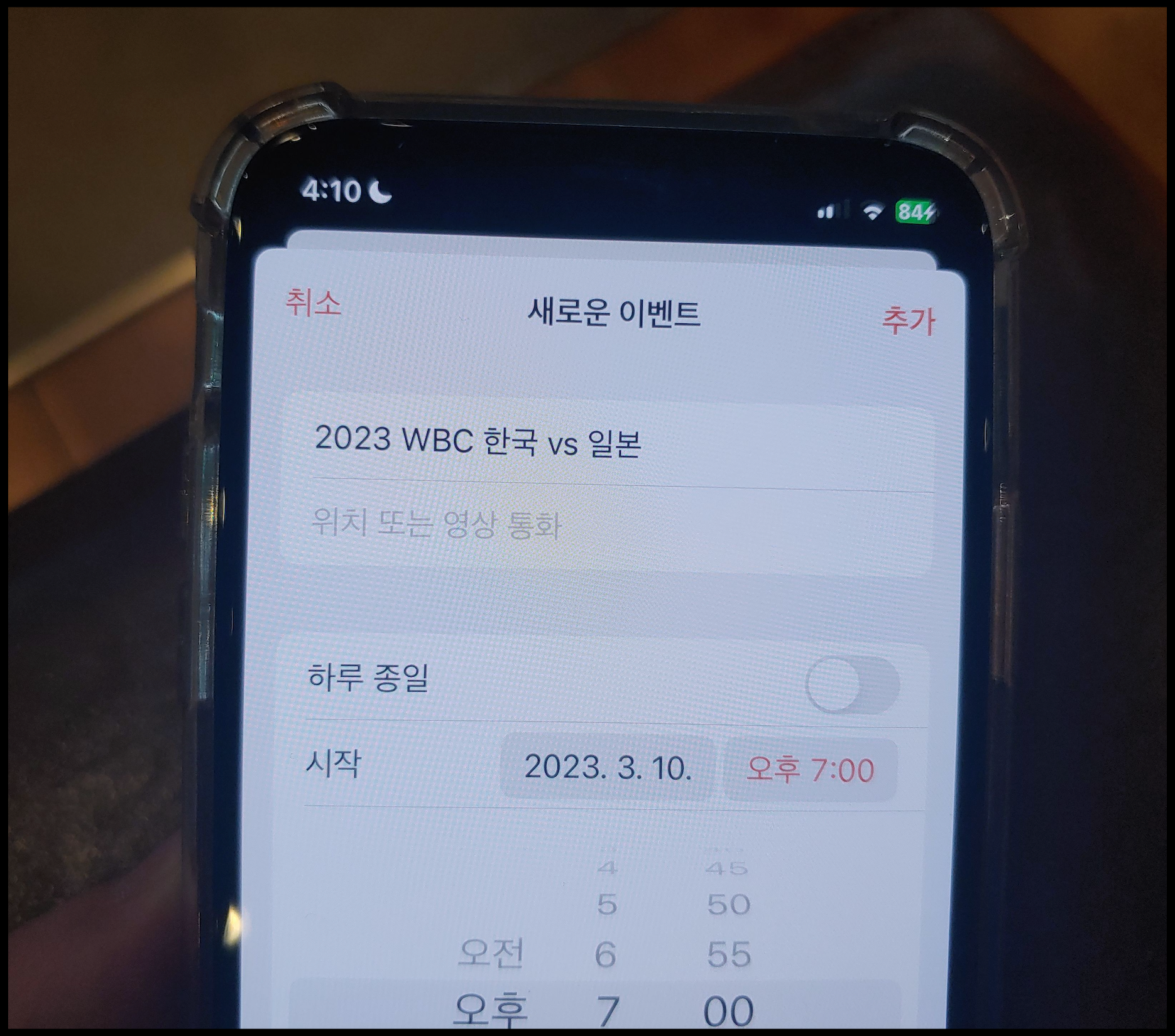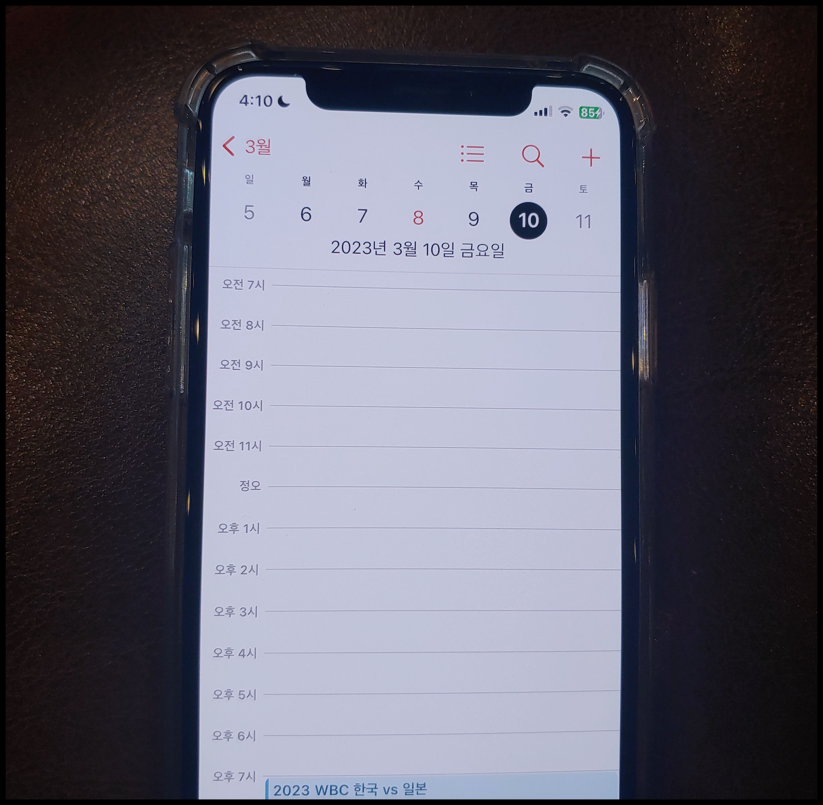 [사진 = 2023년 3월 10일 오후 7시 도쿄돔에서 한국 일본 WBC 본선 1라운드 B조 맞대결 펼칩니다. 두 팀 모두 승리하기 위해 최선을 다할 것으로 보입니다. 일본이 홈팀이면서 많은 관중들의 응원을 받기 때문에 한국보다 유리할지 모르나, 한국의 경우 2020 도쿄올림픽 일본전 패배 및 노메달 수모를 겪었기 때문에 이번 일본전 승리를 벼르고 있을 것임에 틀림 없습니다. 과거 WBC에서 일본 상대로 승리와 패배를 주고 받았기 때문에 쉽게 물러설 수 없는 승부를 펼칠 것으로 보입니다. 사진은 저의 스마트폰 달력이며 해당 일을 가리킵니다. (C) 나이스블루]