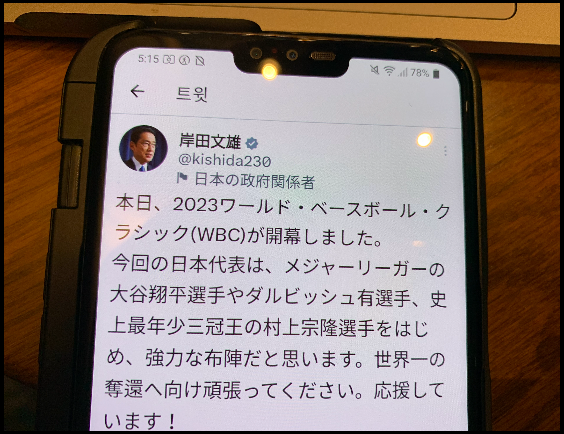 [사진 = 기시다 후미오 일본 총리는 지난 3월 8일 트위터를 통해 일본 야구 대표팀 선전을 바라는 게시물을 올렸습니다. 오타니 쇼헤이, 다르빗슈 유(샌디에이고 파드리스)와 더불어 무라카미 무네타카 이름을 직접적으로 언급했습니다. 일본은 2023 월드베이스볼클래식(WBC)에서 우승을 목표로 합니다. 2006년과 2009년 우승에 이어 14년 만에 WBC 제패할지 주목됩니다. 참고로 2019 프리미어12 우승, 2020 도쿄올림픽 금메달 달성하며 세계 무대에서 좋은 성과를 계속 이루어냈습니다. (C) 기시다 후미오 일본 총리 공식 트위터]