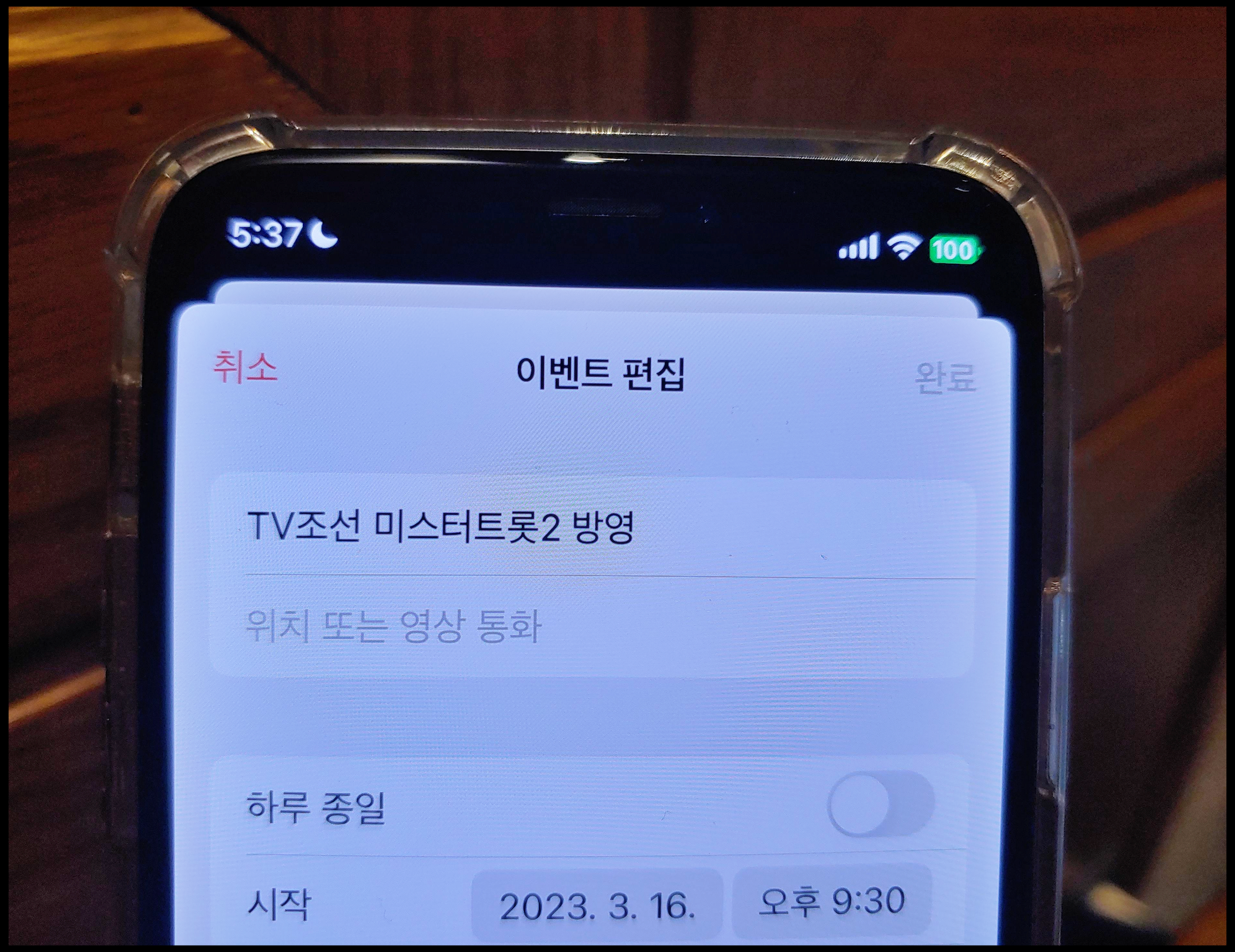 [사진 = 미스터트롯2 결승전 평소보다 일찍 방영됩니다. 3월 16일 오후 9시 30분부터 시작합니다. 사진은 저의 스마트폰 달력이며 해당 일을 가리킵니다. (C) 나이스블루]
