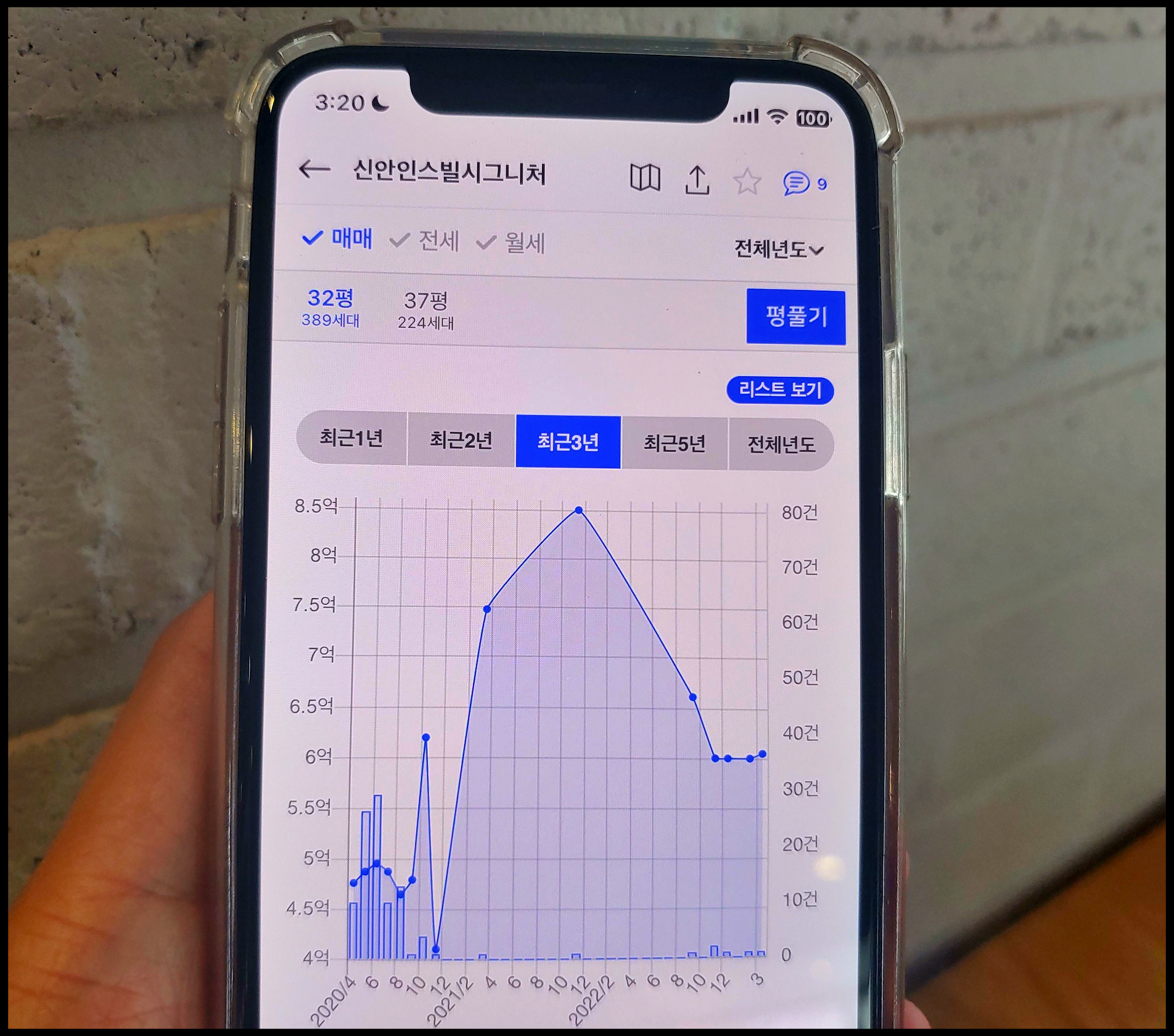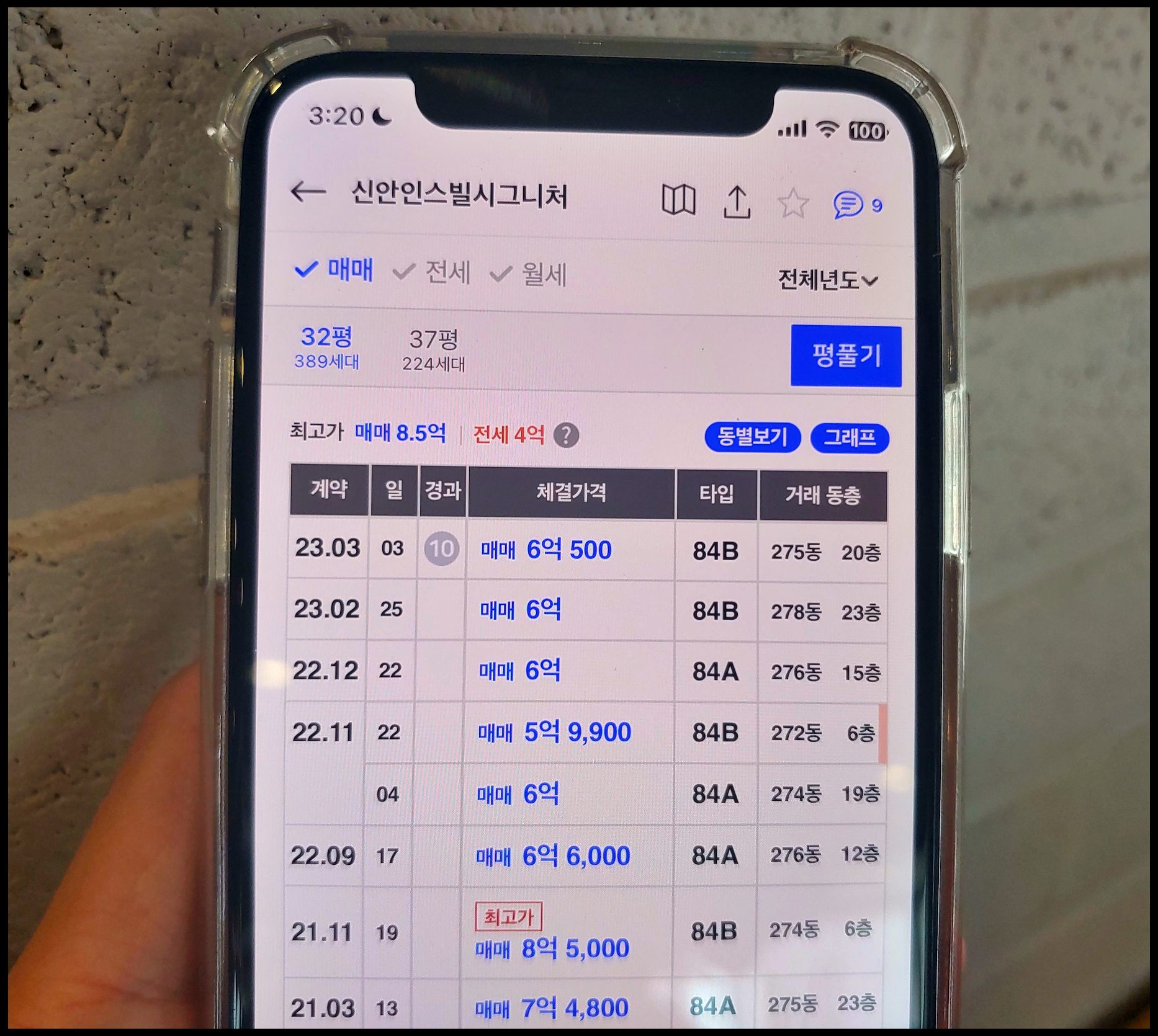[사진 = 또 다른 인근 아파트인 613세 규모이자 2020년 4월 분양했던 신안인스빌시그니처 최근 거래 내역은 다음과 같습니다. 84타입(32평)의 경우 이번달에 6억 500만 원 거래된 적이 있으며 그 이전달, 지난해 12월에는 6억 원 거래가 있었습니다. 아까전에 봤던 고덕국제신도시제일풍경채와 더불어 평택 고덕자이 센트로 분양가 주변 아파트 단지의 84타입 시세는 약 6억 원 정도로 생각하면 될 듯합니다. (C) 아실(아파트 실거래가) 앱]
