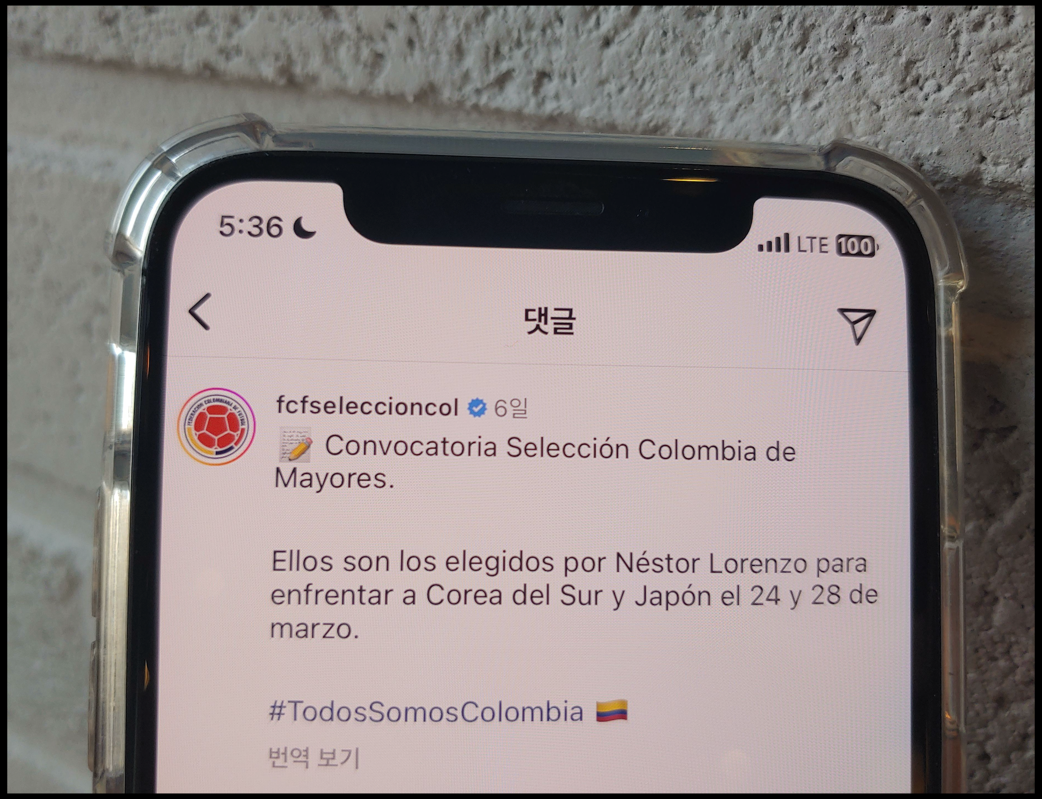 [사진 = 콜롬비아 축구협회 공식 인스타그램에서는 3월 24일 A매치 한국 원정, 3월 28일 A매치 일본 원정에 나설 자국 대표팀 선수들의 명단을 공개했다. (C) 콜롬비아 축구협회 공식 인스타그램]