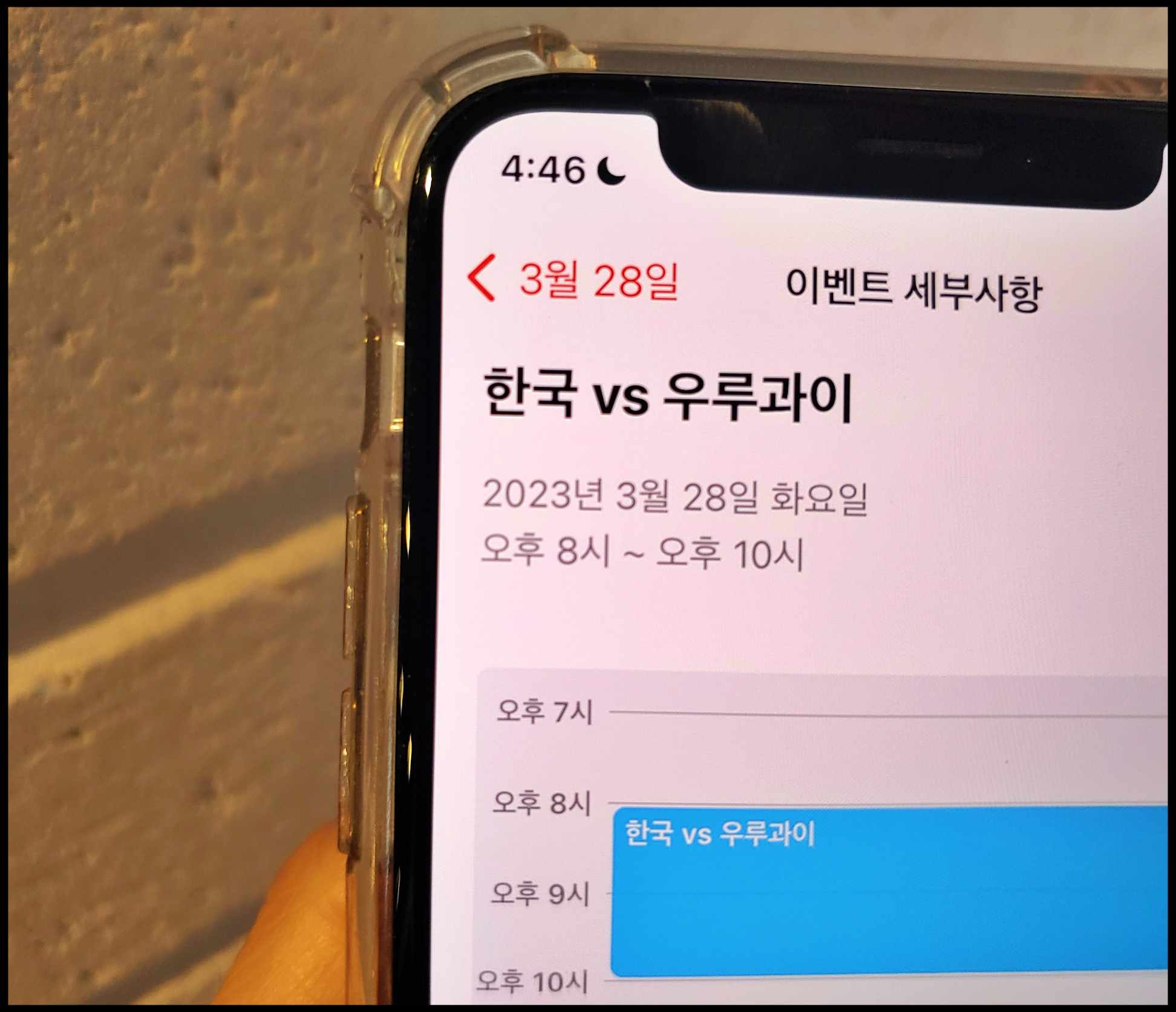 [사진 = 한국 우루과이 축구 A매치 맞대결이 2023년 3월 28일에 펼쳐진다. 사진은 글쓴이 스마트폰 달력이며 해당일을 가리킨다. (C) 나이스블루]