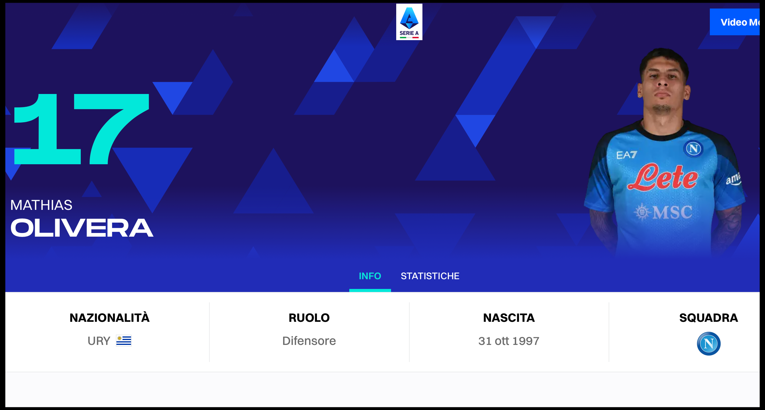 [사진 = 김민재 동료이자 나폴리 소속의 왼쪽 풀백 마티아스 올리베라 (C) 세리에A 공식 홈페이지 프로필 사진(legaseriea.it)]