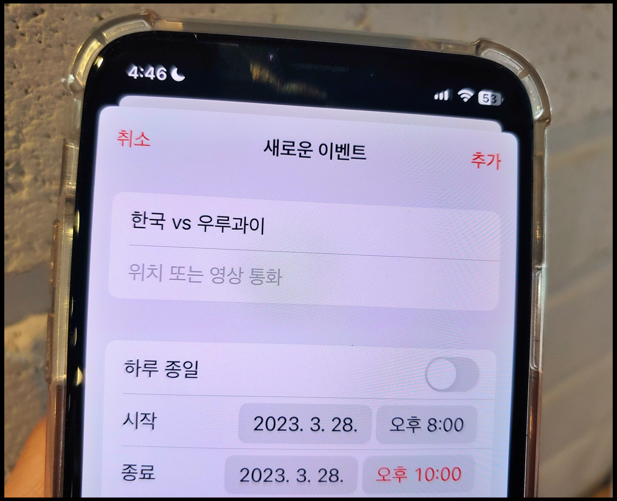 [사진 = 한국 우루과이 축구 A매치 맞대결이 2023년 3월 28일에 펼쳐진다. 사진은 글쓴이 스마트폰 달력이며 해당일을 가리킨다. (C) 나이스블루]