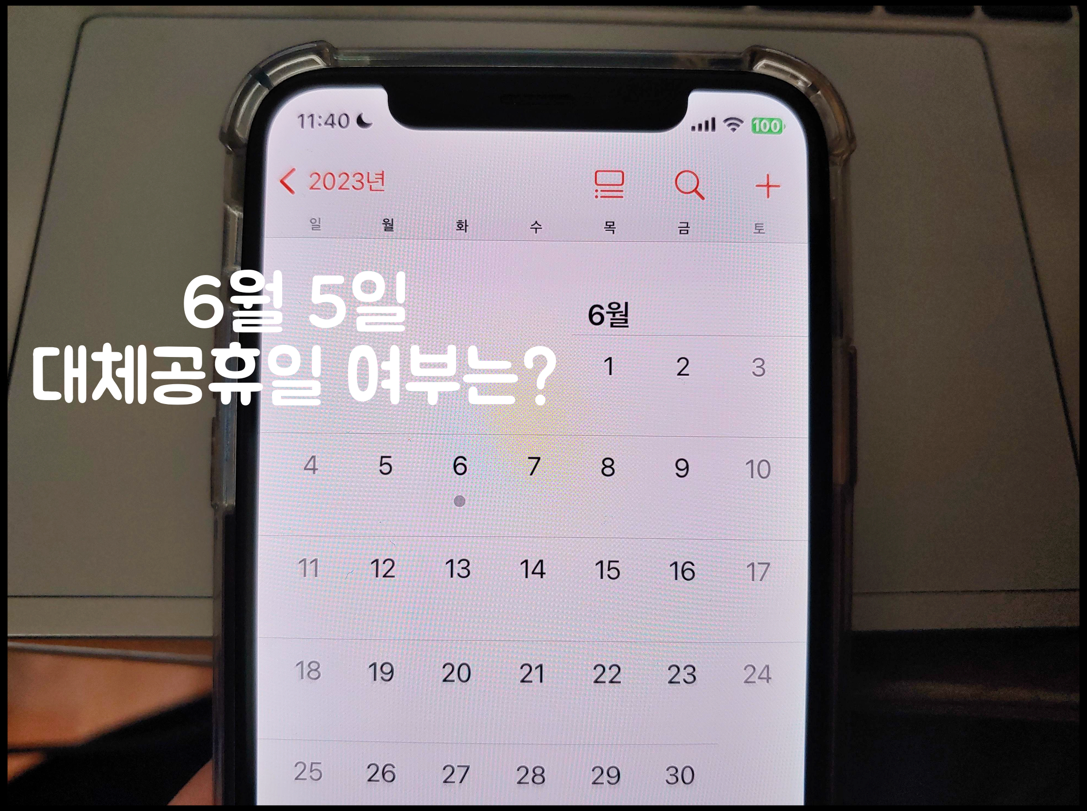 [사진 = 2023년 6월 5일은 월요일이며 다음날인 6일이 화요일이자 현충일입니다. (C) 아이폰 달력]