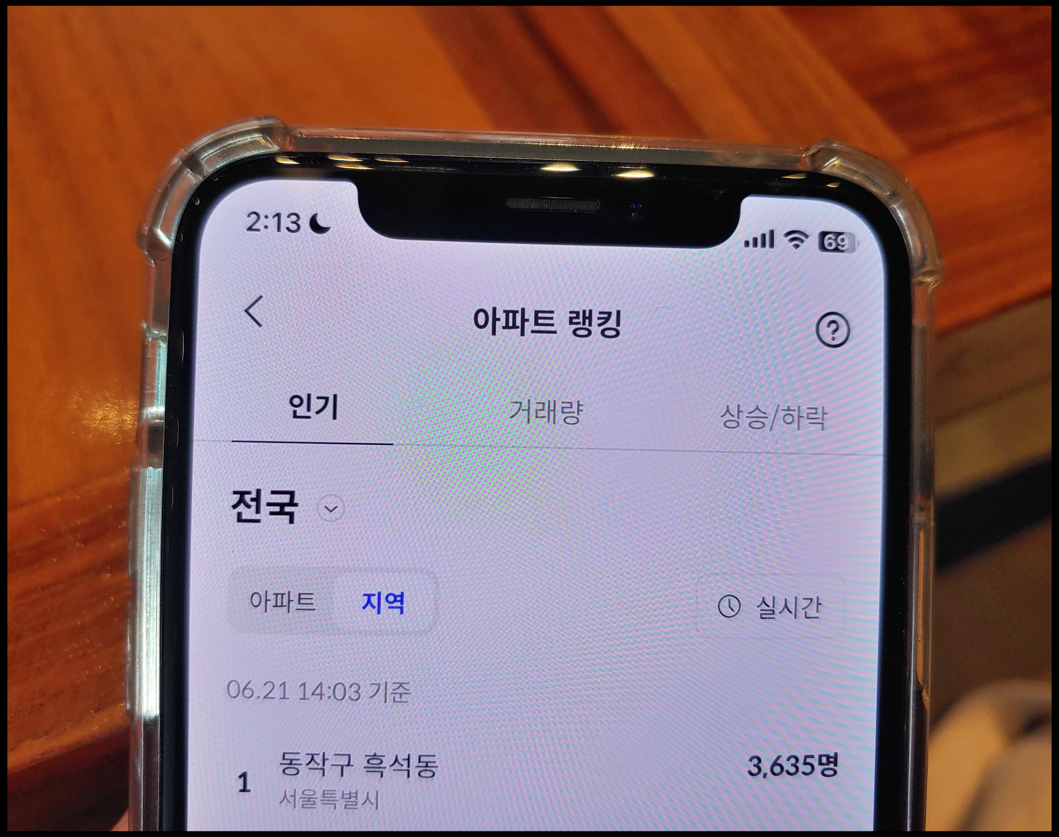 [사진 = 호갱노노 앱에 따르면 흑석자이 아파트 및 흑석동 검색어가 1위에 올라갔습니다. 전국적으로 이곳을 주목하는 분이 많다는 뜻입니다. 실제로 30~40대에서 관심도가 높다고 합니다. (C) 호갱노노 앱]