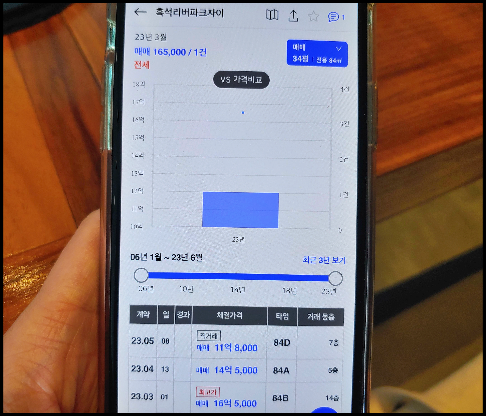 [사진 = 아실 앱에서 흑석리버파크자이 최근 거래 내역을 알 수 있습니다. 매매 기준으로 59타입(25평) 지난 5월에 12억 4,000만 원 거래됐습니다. 84타입(34평)은 지난 5월 직거래가 있었다면 그 이전인 4월에 14억 5,000만 원 거래된 적이 있습니다. 현재 청약홈에 올라온 무주택 59타입 및 계약취소주택 84타입의 분양가는 이보다 많이 낮은 편에 속합니다. (C) 아파트 실거래가 앱(아실 앱)]