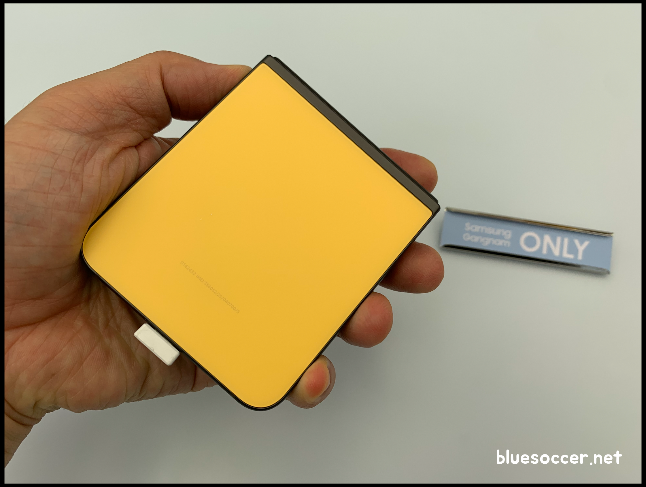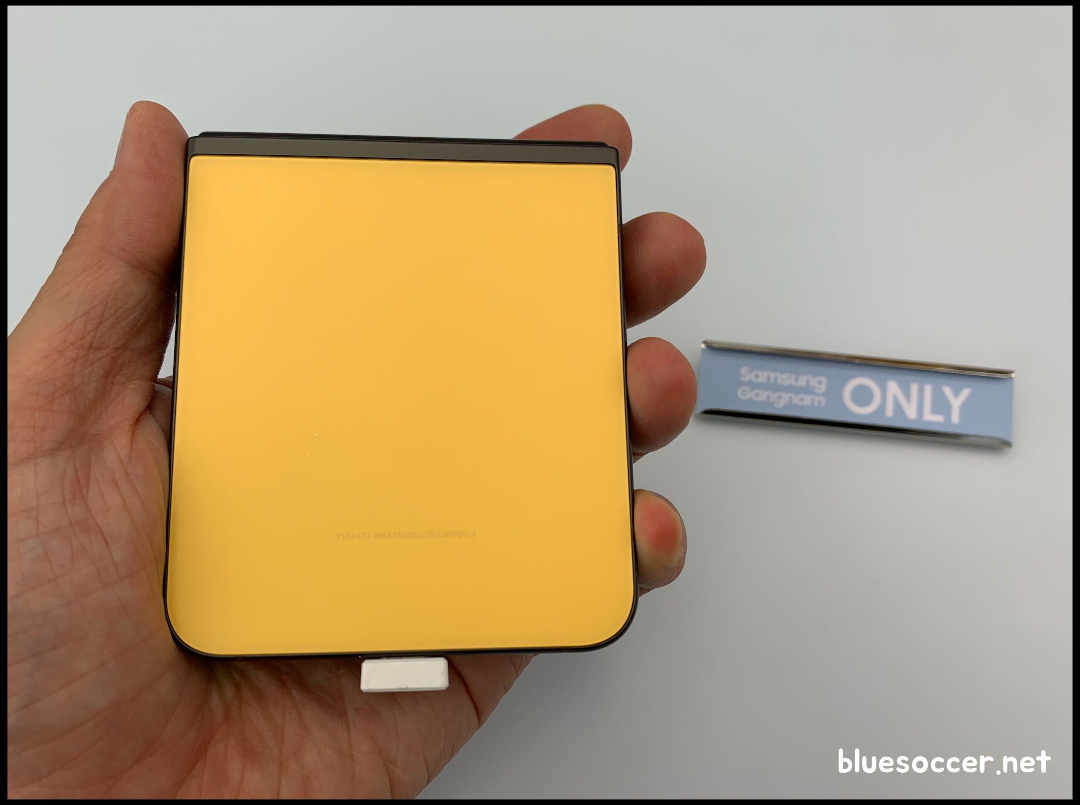 갤럭시 Z플립5 옐로우 색상 모습입니다. 해당 제품의 4+4가지 색상 중에서 가장 밝은 톤을 나타냅니다. 개인적인 시각에서는 삼성닷컴 및 삼성 강남 전용 모델 중에서 색을 잘 뽑아낸 것 같은 생각이 듭니다. 물론 옐로우 색상이 대중들에게는 호불호가 쉽게 갈릴 수 있습니다. 현재는 존재하지 않는 어느 모 축구팀 유니폼을 봐도 말입니다. 그럼에도 밝거나 또는 색다른 느낌의 색상을 찾는 분들에게는 옐로우 색상을 눈여겨 보는 분도 있을 듯합니다.