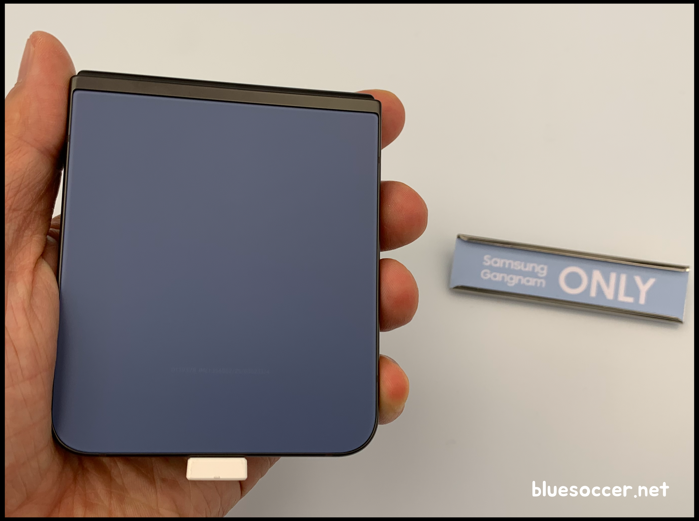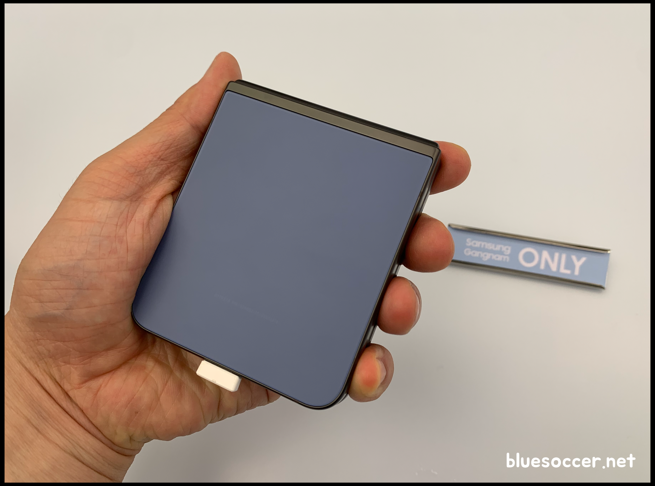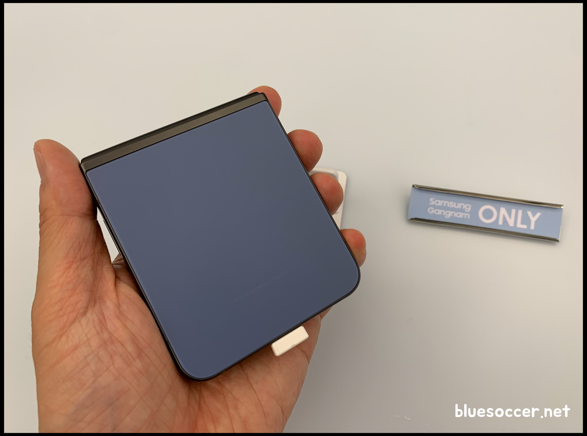 갤럭시 Z플립5 블루 모습입니다. 인터넷으로 봤던 사진에 비해서 색상이 짙습니다. 아마도 어두운 색상을 선호하는 분들에게 눈길이 쉽게 갈 것 같은 예감입니다. 기본 색상의 그라파이트와 더불어서 말입니다. 그러고보니 이번 갤럭시 Z플립5 색상 총 8가지 중에 어두운 계열의 색상은 2가지 됩니다. 일반적으로 블루는 어두운 계열에 포함되지 않는데 이 제품의 실물을 보면 어둡습니다. 다른 6가지 색상은 밝은 톤을 나타내거나 색상의 느낌을 생생하게 표현합니다. 워낙 Z플립 시리즈가 젊은 여성분들에게 인기가 많다보니(특히 갤럭시 Z플립3 라벤더) 이번에 밝은 톤으로 나온 모델이 여럿 되는데 블루는 대조적인 것 같습니다.