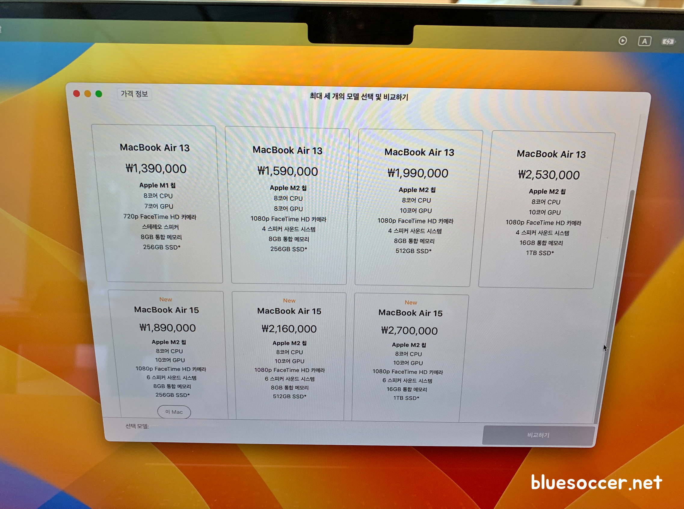 맥북에어 15인치 M2 가격 13인치 M2에 비하면 전반적으로 높은 편에 속합니다.