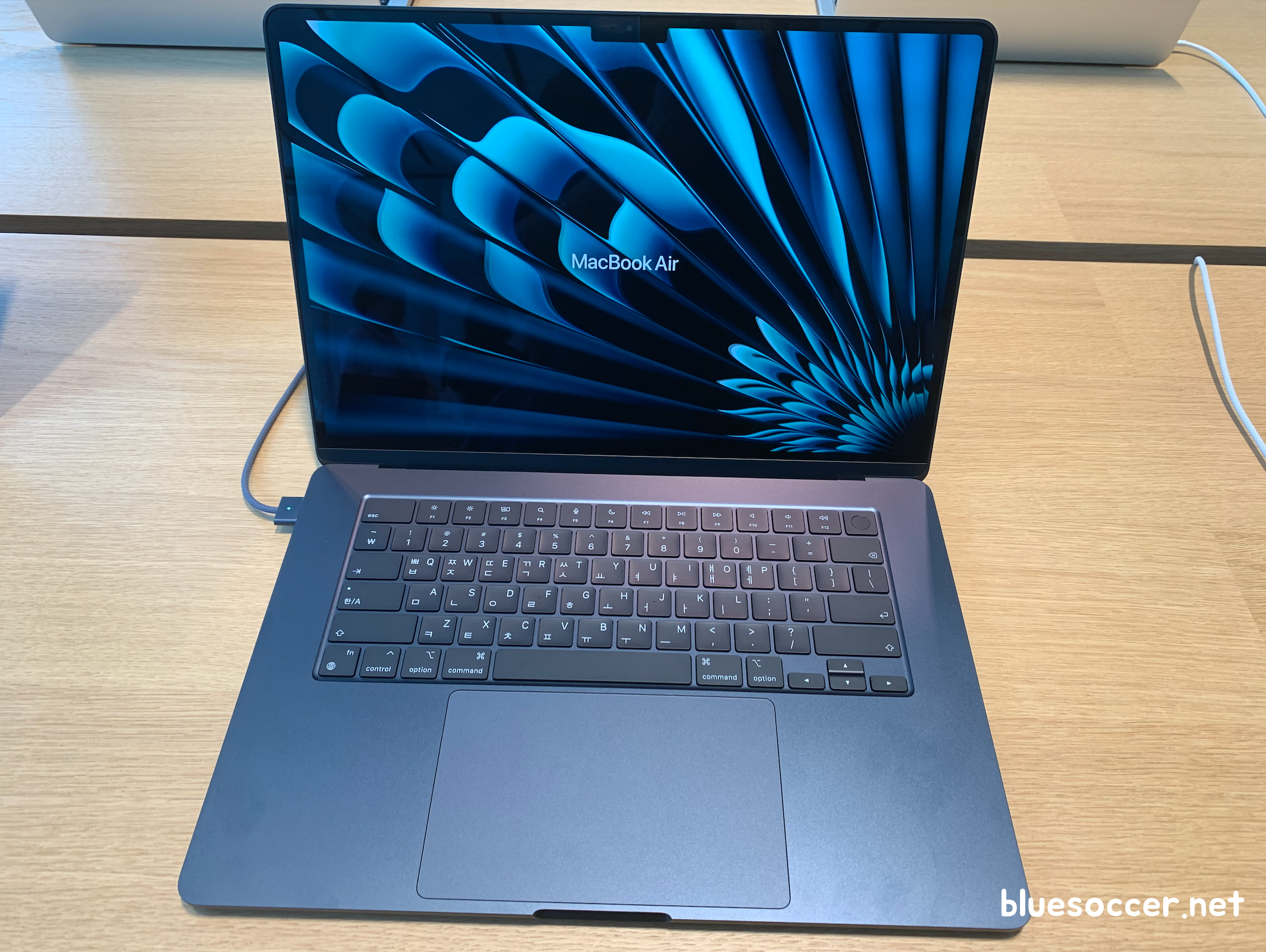 맥북에어 15인치 M2 실물 모습입니다. 기존 맥북에어 디스플레이 크기가 13인치로서 작은 편에 속하기 때문에 넷플릭스 및 유튜브 동영상 시청하면서, 생산적인 일을 하면서 답답함을 느꼈던 분들이 계셨을 것으로 보입니다. 이러한 아쉬움을 해소하기 좋을만한 15인치 제품이 나왔습니다.