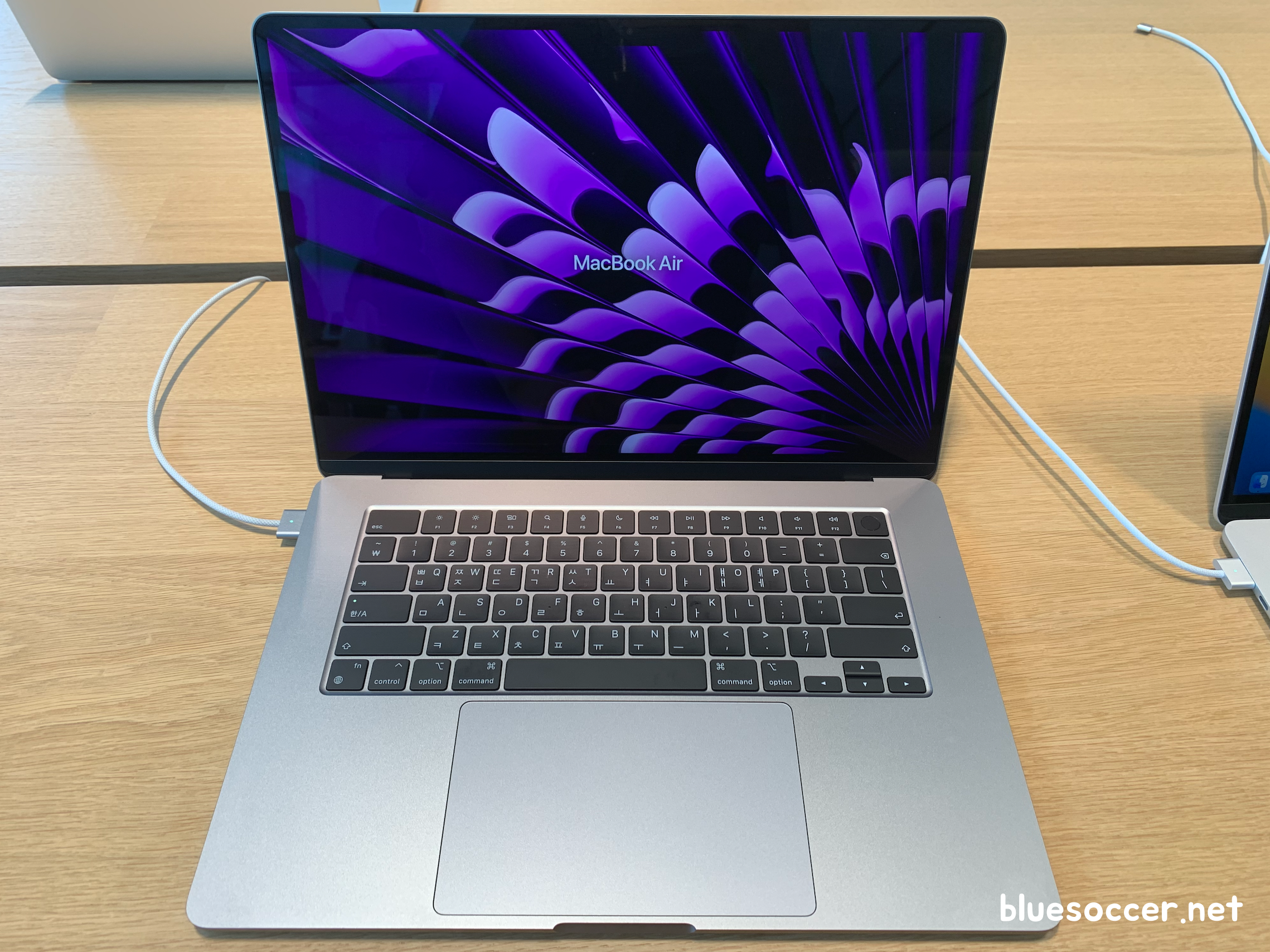 맥북에어 15인치 M2 실물 모습입니다. 기존 맥북에어 디스플레이 크기가 13인치로서 작은 편에 속하기 때문에 넷플릭스 및 유튜브 동영상 시청하면서, 생산적인 일을 하면서 답답함을 느꼈던 분들이 계셨을 것으로 보입니다. 이러한 아쉬움을 해소하기 좋을만한 15인치 제품이 나왔습니다.