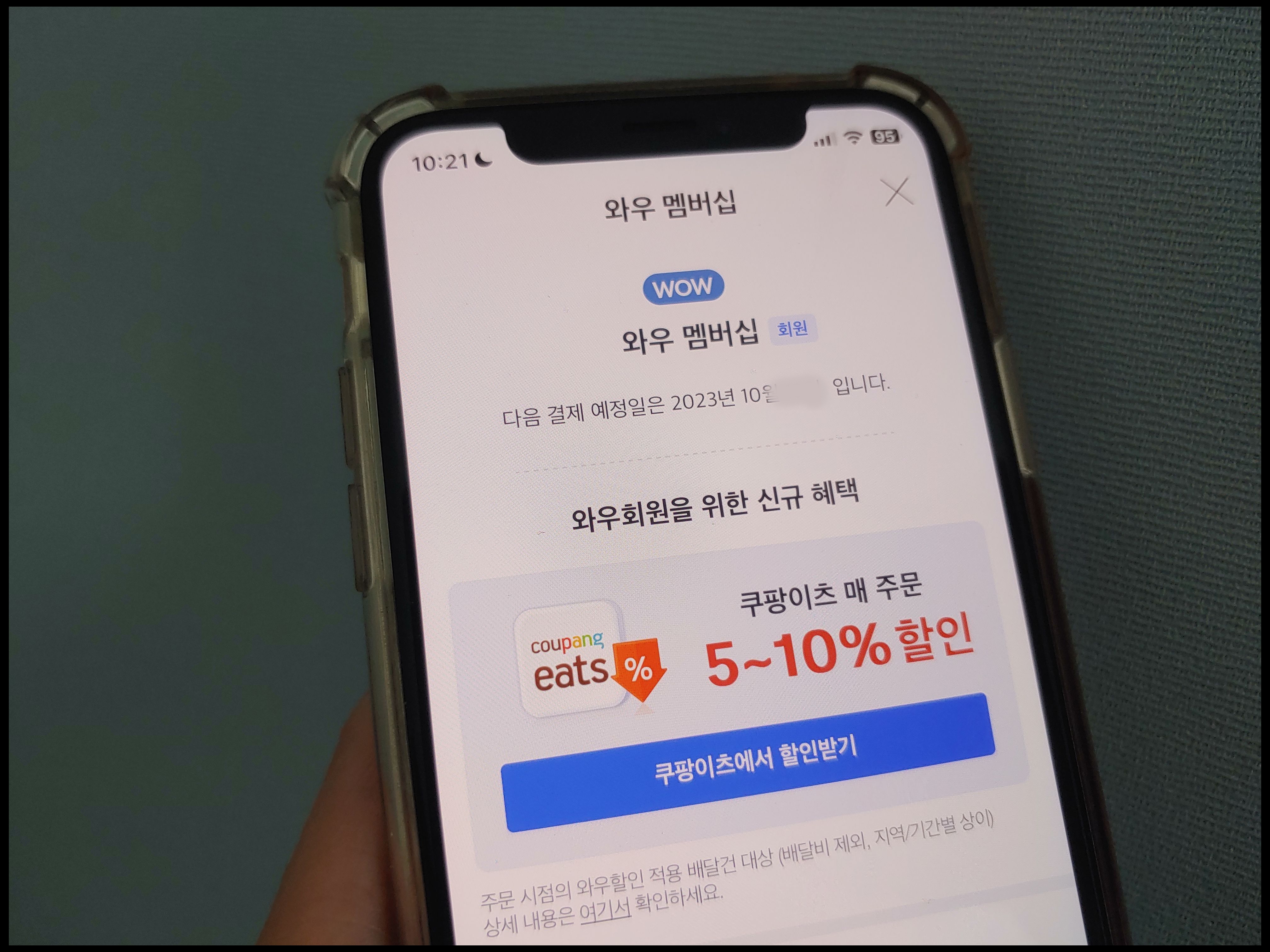[사진 = 저는 쿠팡 와우회원입니다. 그동안 쿠팡 이용하면서 할인 혜택을 누렸던 경험들이 있습니다. 최근에는 쿠팡 와우회원에 한해서 쿠팡이츠 매 주문 5~10% 할인되는 신규 혜택 도입됐습니다. 그리고 많은 분들이 아시겠지만 쿠팡 와우회원은 쿠팡플레이 무료 시청 가능합니다. (C) 쿠팡 앱]