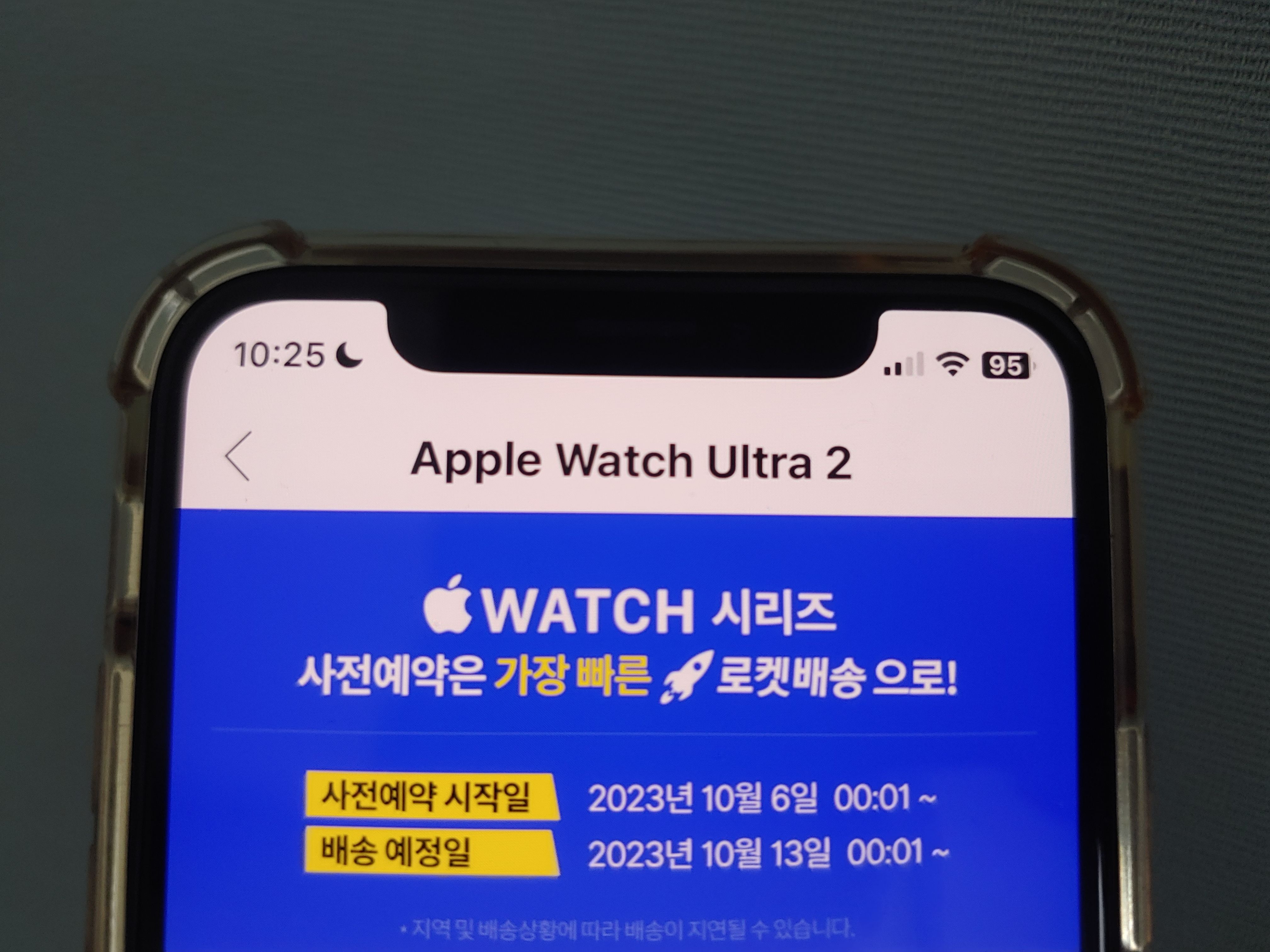 [사진 = 아이폰15 사전예약 쿠팡 10월 6일부터 시작된다고 합니다. 오전 0시 1분부터 말입니다. 이번 사전예약은 애플워치 울트라2 사전예약 및 애플워치9 사전예약 함께 진행됩니다. 애플의 새로운 스마트워치 장만하고 싶어하는 분들이라면 해당 프로모션 주목하시면 될 듯합니다. 10월 6일 오전 0시 1분부터 사전예약 시작된다고 합니다. (C) 쿠팡 앱]