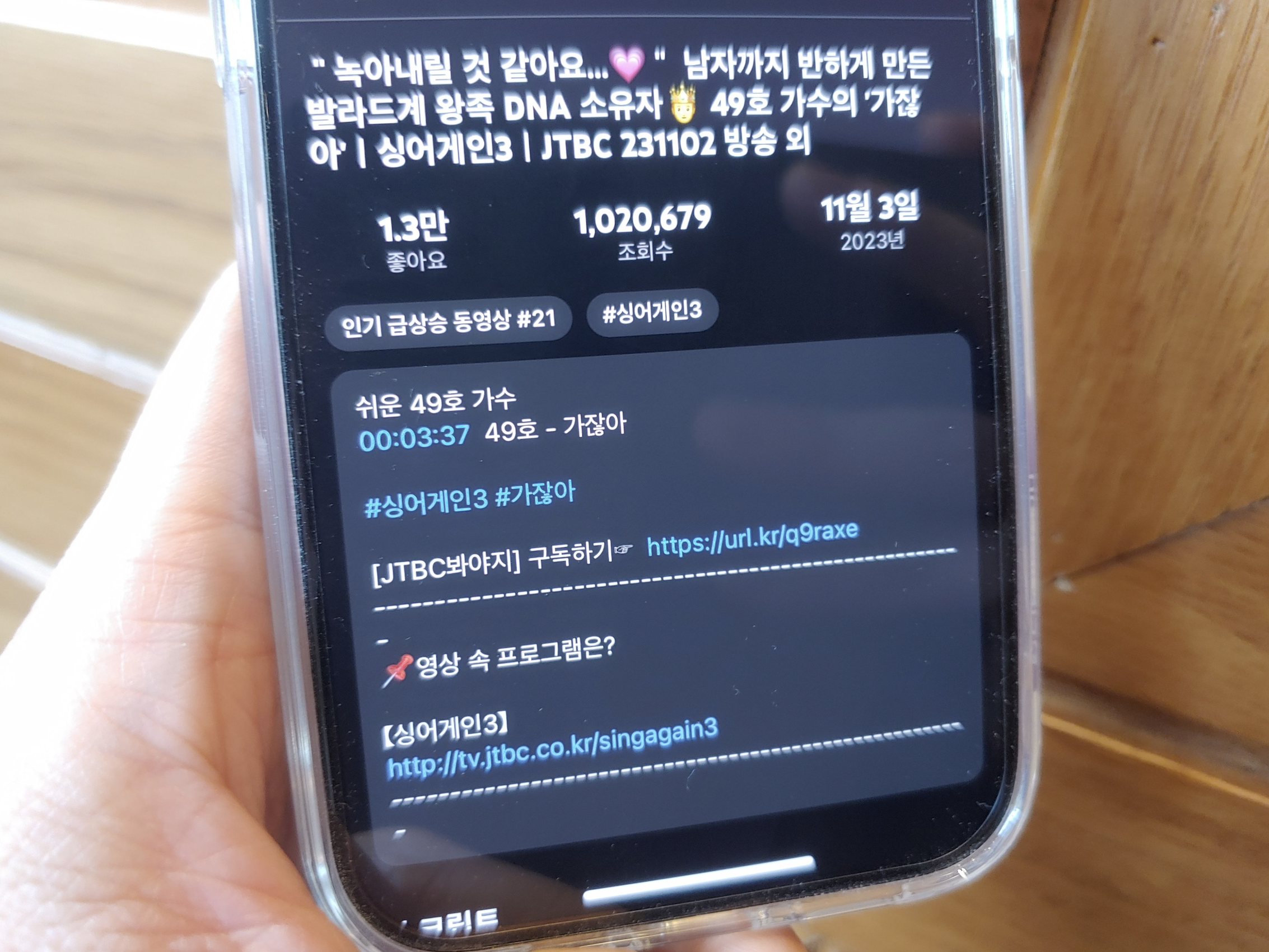 [사진 = 싱어게인3 49호 가수 소수빈 노래 1라운드 영상이 유튜브 오픈된지 23시간 경과했을 때 조회 수 78만 뷰 넘으며 인기 급상승 동영상 4위에 올랐습니다. 어쩌면 그 이전에 4위보다 더 좋은 순위에 있었을지 모릅니다. 현재시점에서는 오픈 하루 경과하면서 조회 수 100만 뷰를 넘어 102만 뷰가 됐습니다. 유튜브를 통해 자신의 화제성을 높이는 중입니다. (C) 유튜브 앱]