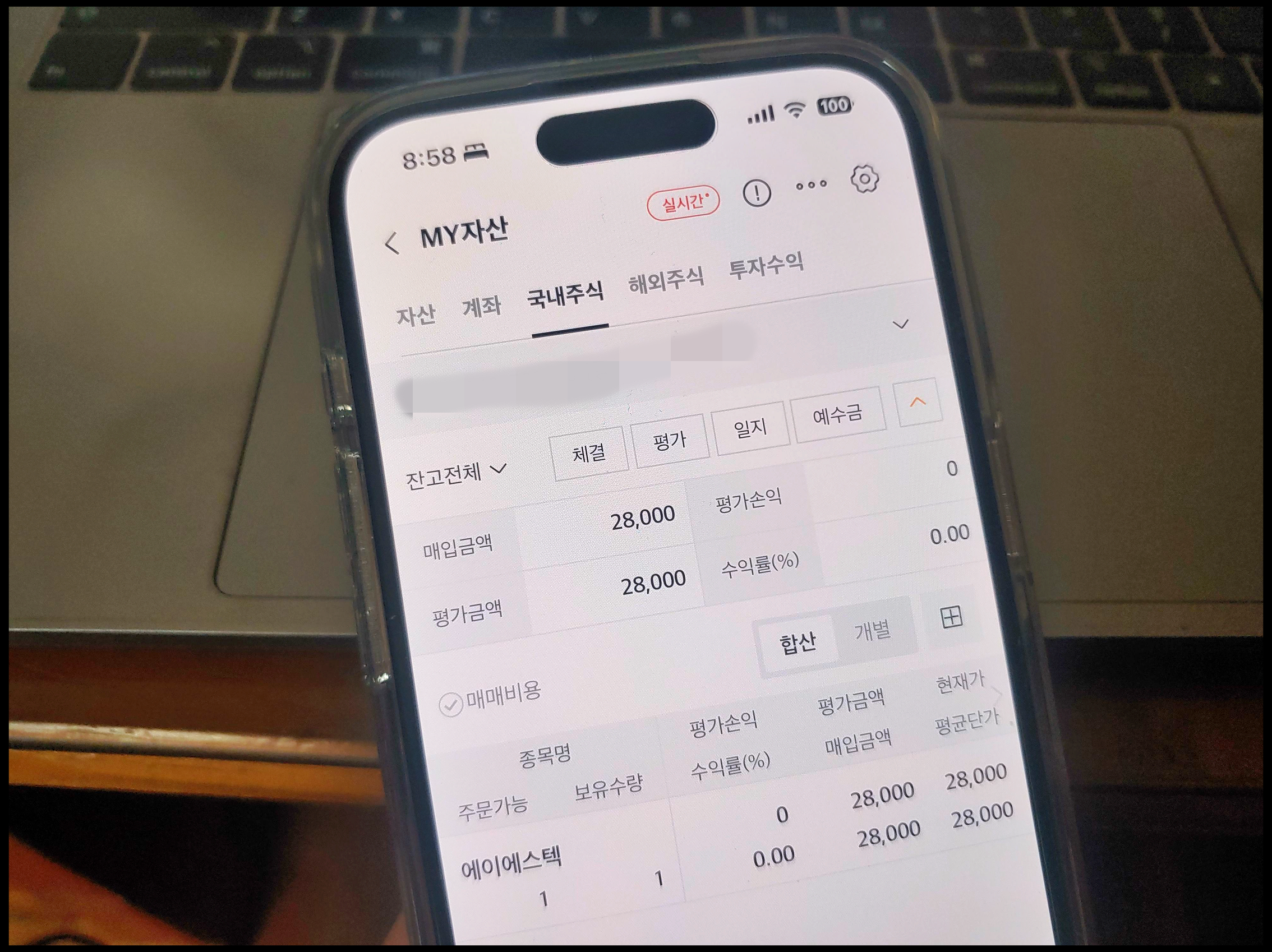 [사진 = 에이에스텍 균등 1주 배정 인증합니다. 1인당 균등 배정 수량 0.49주 경쟁률을 뚫었습니다. 그리고 며칠 뒤인 오늘 에이에스텍 공모가 금액에 비해서 훨씬 높은 주가 추이를 나타냈습니다. 균등 or 비례 최소 1주 배정 받았던 사람이 승자입니다. 저 같은 경우에는 비례를 노리지 않고 미래에셋증권 통해서 공모주 청약했기 때문에 균등 1주 배정 되기를 바랬는데 결국 실현됐습니다. (C) 나이스블루]