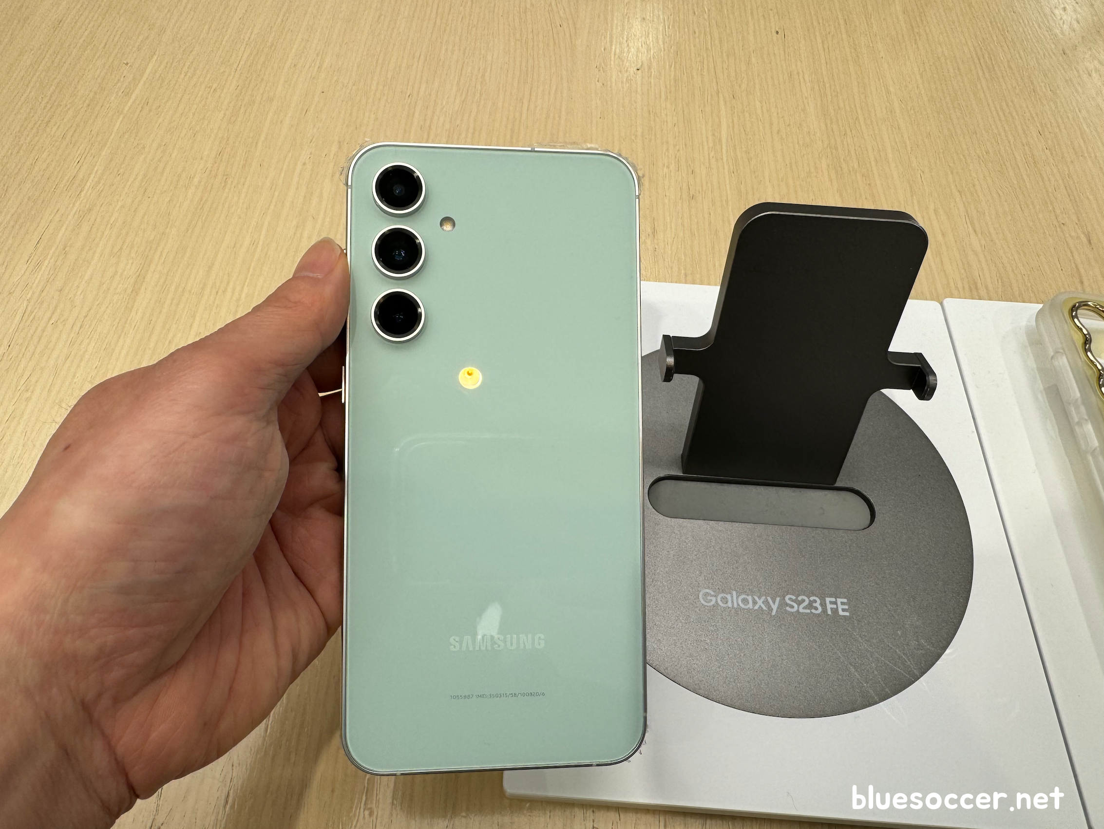 갤럭시 S23 FE 민트 색상 실물 모습입니다. 실질적으로는 연두색에 가까워 보입니다. 흔히 민트에 대해서는 호불호가 갈리기 쉬운 편인데(특히 민트 아이스크림) 스마트폰 후면으로 선보이게 된 해당 색상은 잘 나온 것 같습니다.