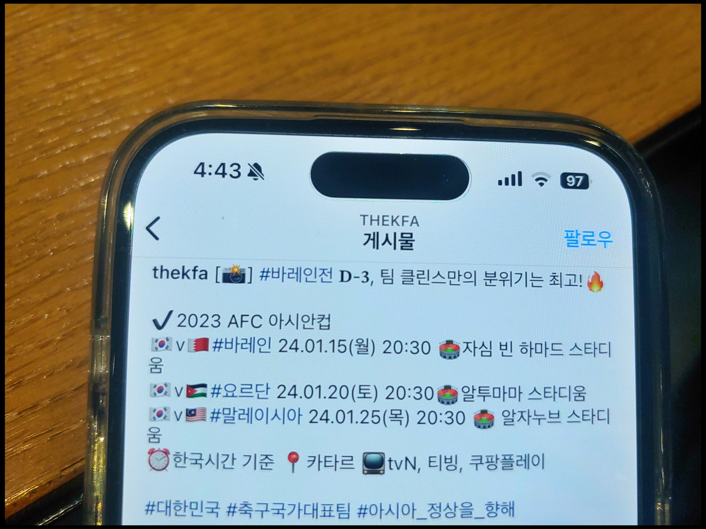 [사진 = 위르겐 클린스만 감독이 지휘하는 한국 국가 대표팀의 2023 아시안컵 E조 일정 이렇다. 오는 1월 15일 바레인전, 1월 20일 요르단전, 25일 말레이시아전을 치른다. 조 1위를 획득해야 토너먼트 단계인 아시안컵 16강 일정 수월하게 된다. D조 2위와 격돌하기 때문. 이번 대회 중계는 tvN(TV) 티빙, 쿠팡플레이(이상 OTT) 편성됐다. 참고로 OTT 두 곳은 유료 결제이나 네이버 플러스 멤버십 유료 가입자라면 티빙 무료 콘텐츠 선택 가능하며, 쿠팡 유료 멤버십 와우회원이라면 쿠팡플레이 무료 이용 가능하다. (C) 대한축구협회 공식 인스타그램]