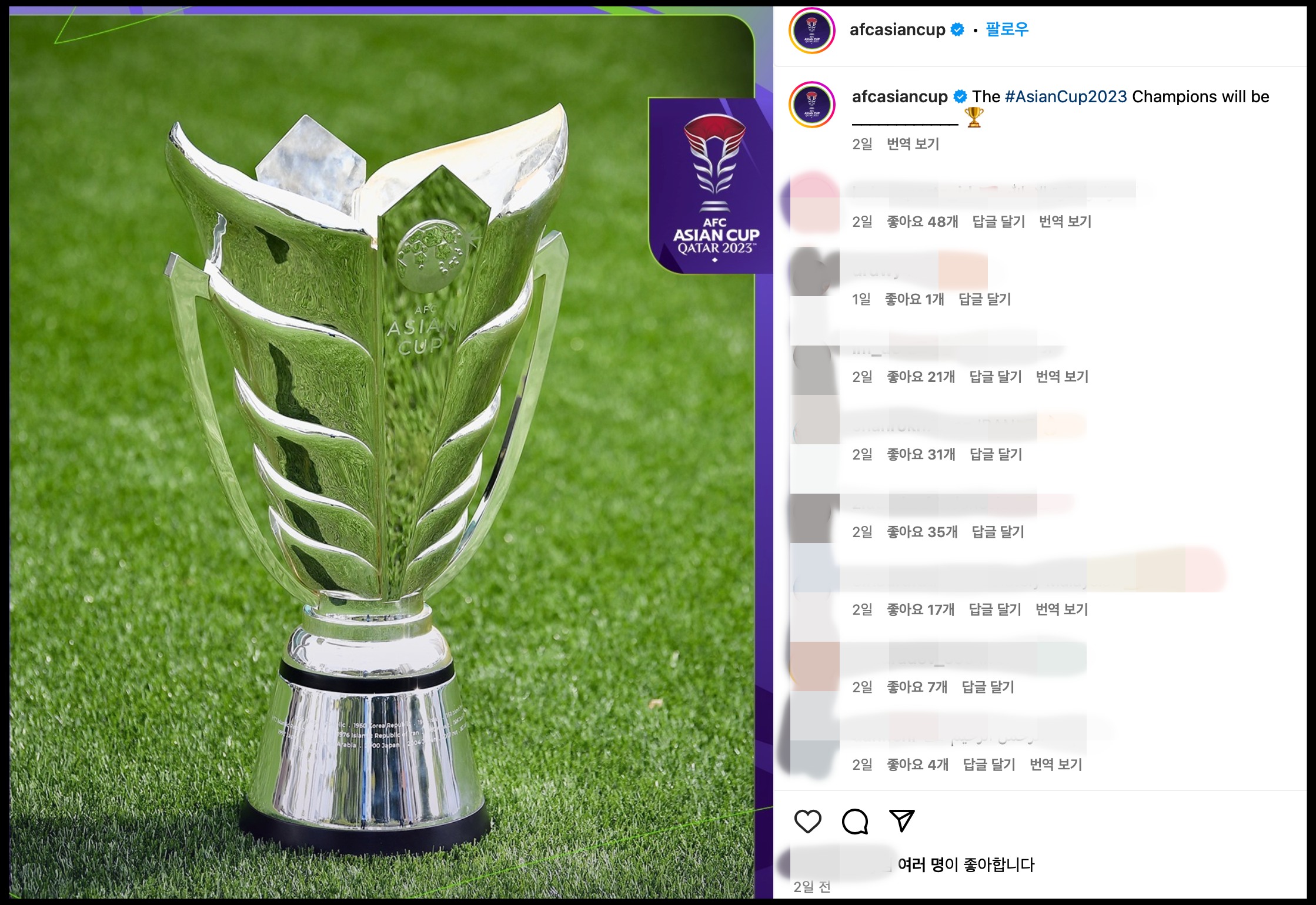 [사진 = 2023 아시안컵 우승 트로피 (C) AFC Asian Cup Official Instagram]