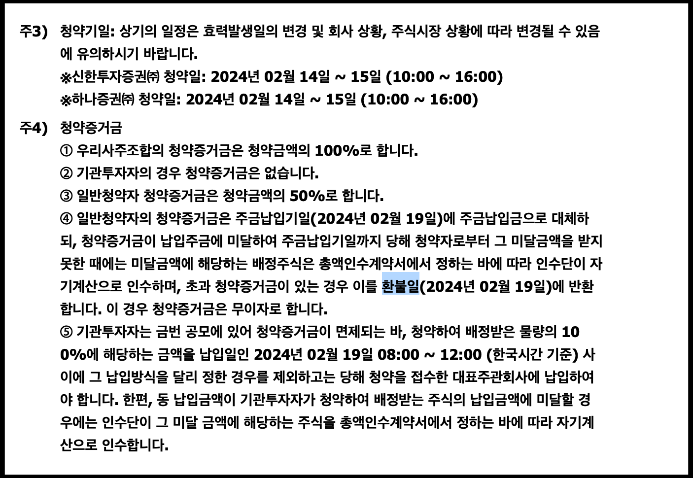 [사진 = 에이피알 환불일 2월 19일 월요일 예정입니다. DART(금융감독원 전자공시시스템)에서 해당 일이 납입기일 및 환불일이라고 안내됐습니다. 많은 금액을 들여서 청약 신청했던 분이 꽤 있을 것으로 예상합니다. 만약 1주 배정 받지 못하면 청약증거금 전액 돌려받게 되며, 반대로 최소 1주 배정 받으셨던 분은 청약증거금에서 1주 당 공모가 250,000원 뺀 금액을 돌려받습니다. (C) DART 공식 홈페이지]